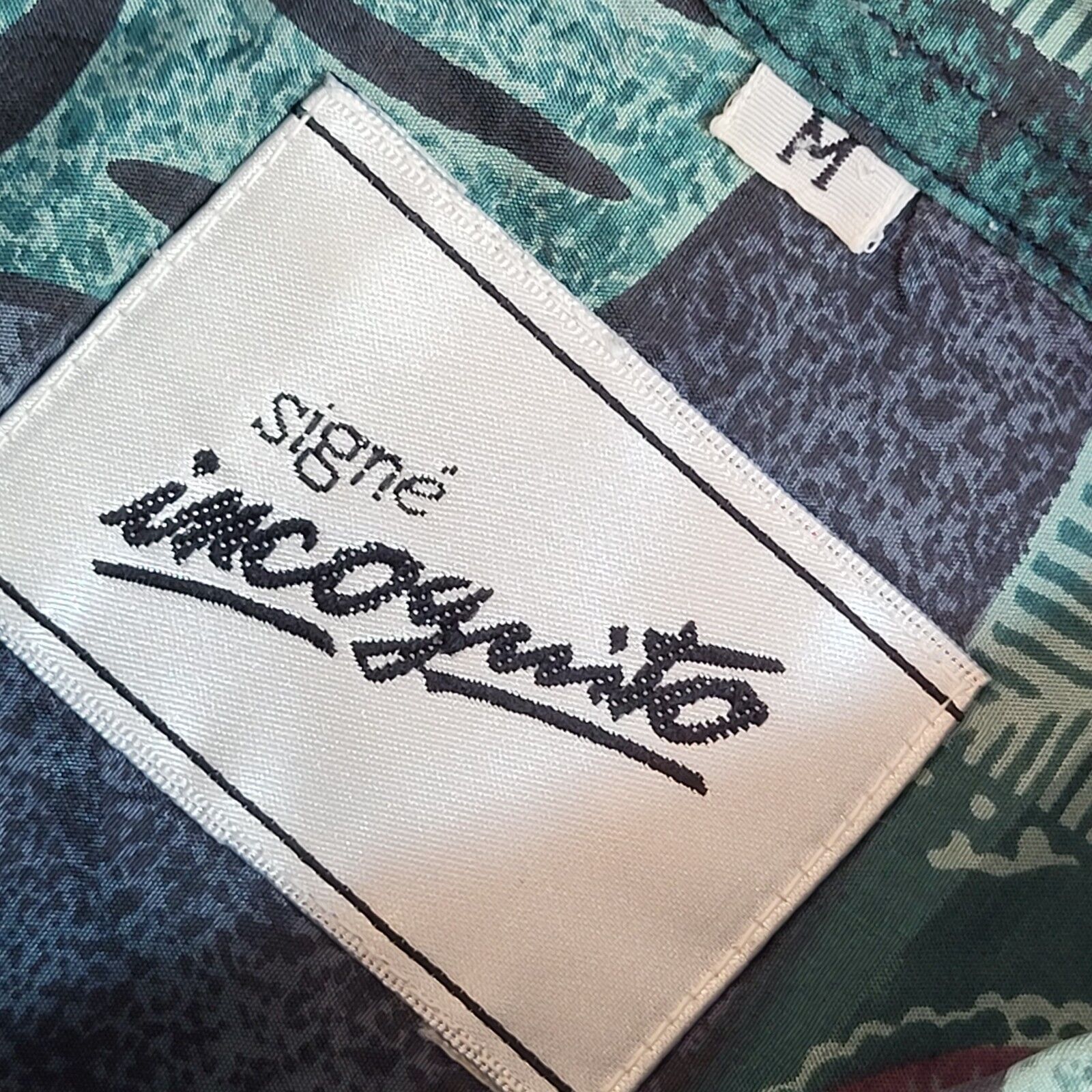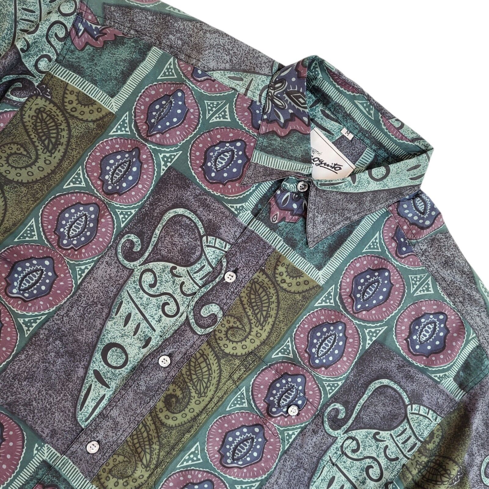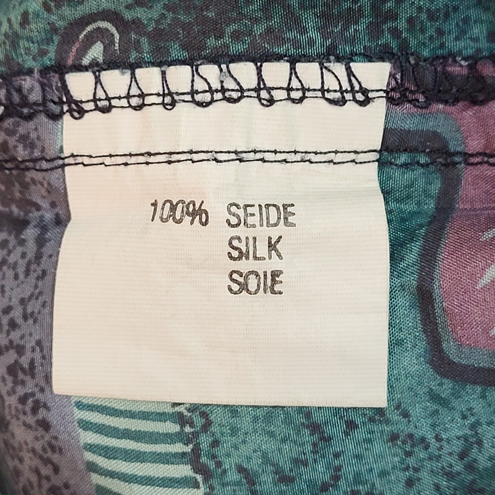 Incognito 90's Purple & Green Abstract Silk Short Sleeve Shirt Uk Men's Size M