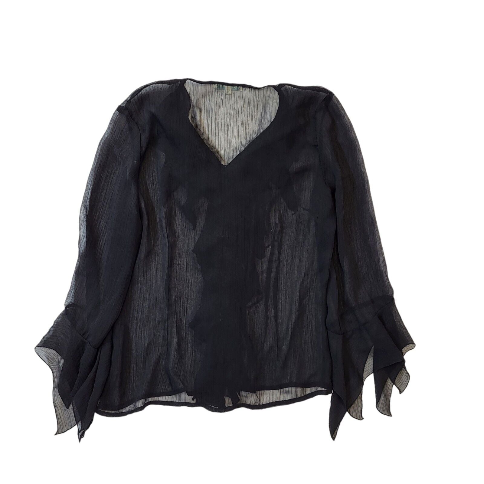 Jacqueline Rio Y2K Vintage Black Sheer Button Up Blouse Womens Size 10.