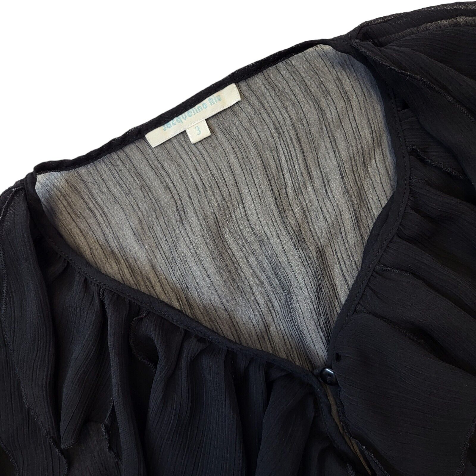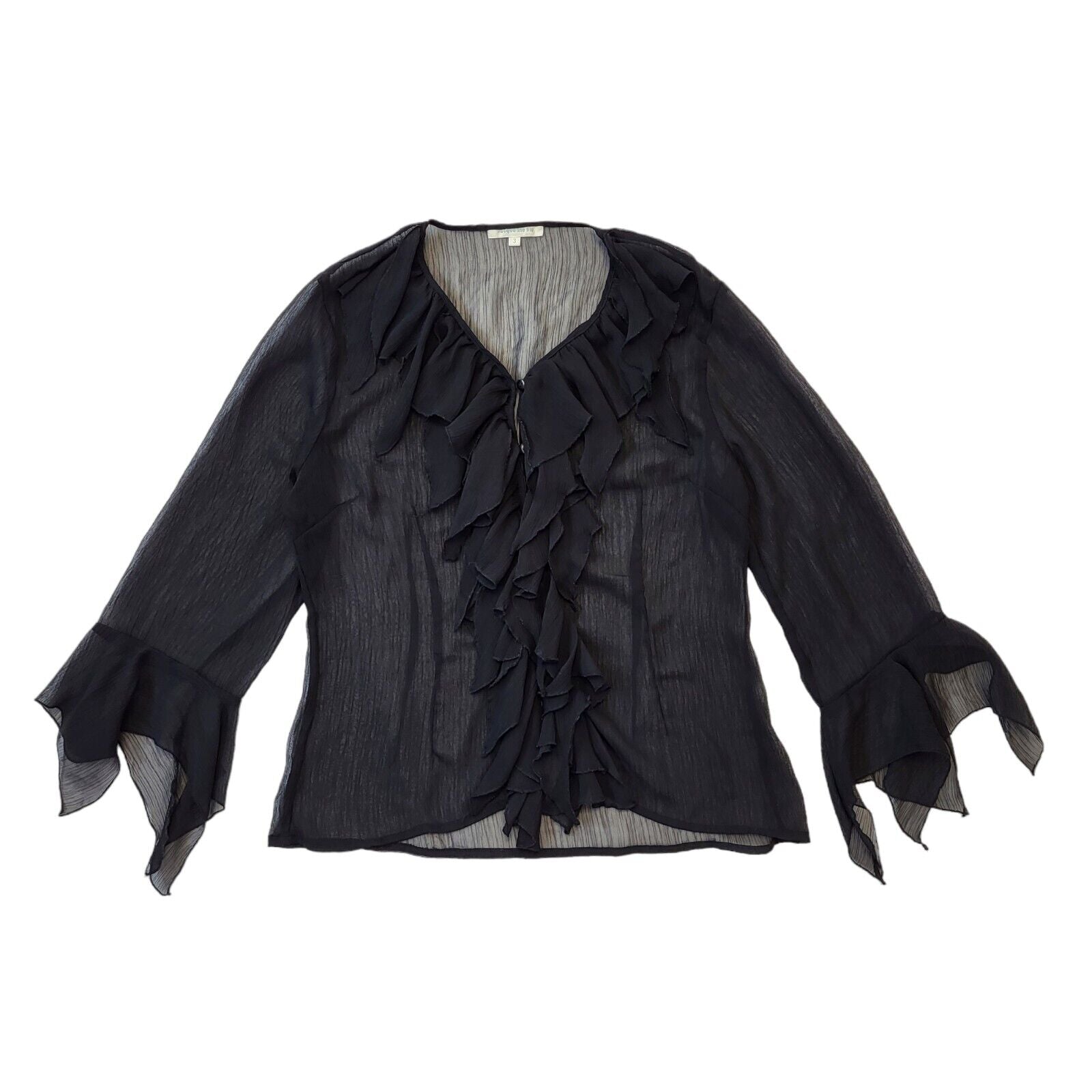 Jacqueline Rio Y2K Black Sheer Button Front Ruffle Blouse Women's Size 10