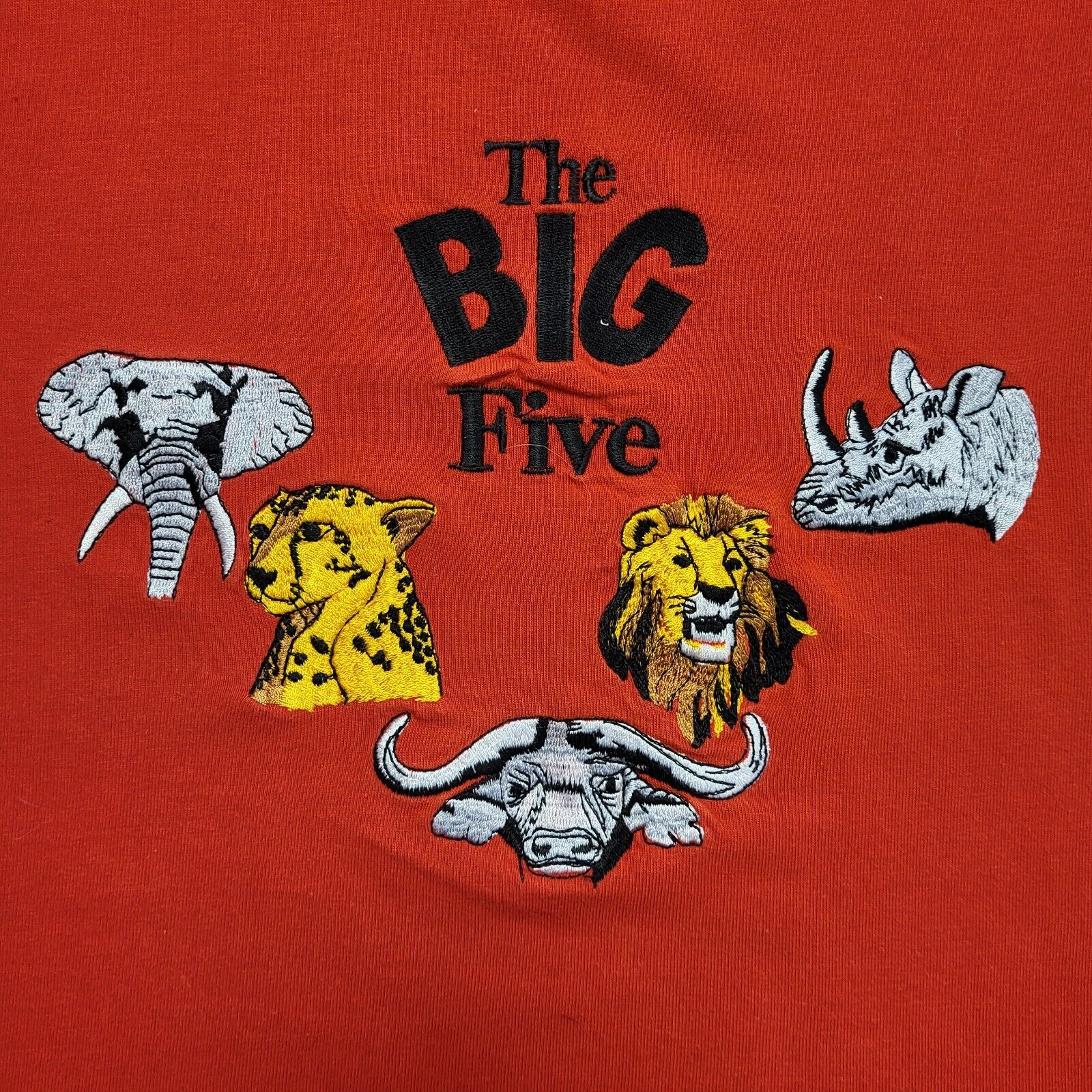 Jamboree The Big Five Red Animals Vintage 90s T-Shirt Uk Men's Large