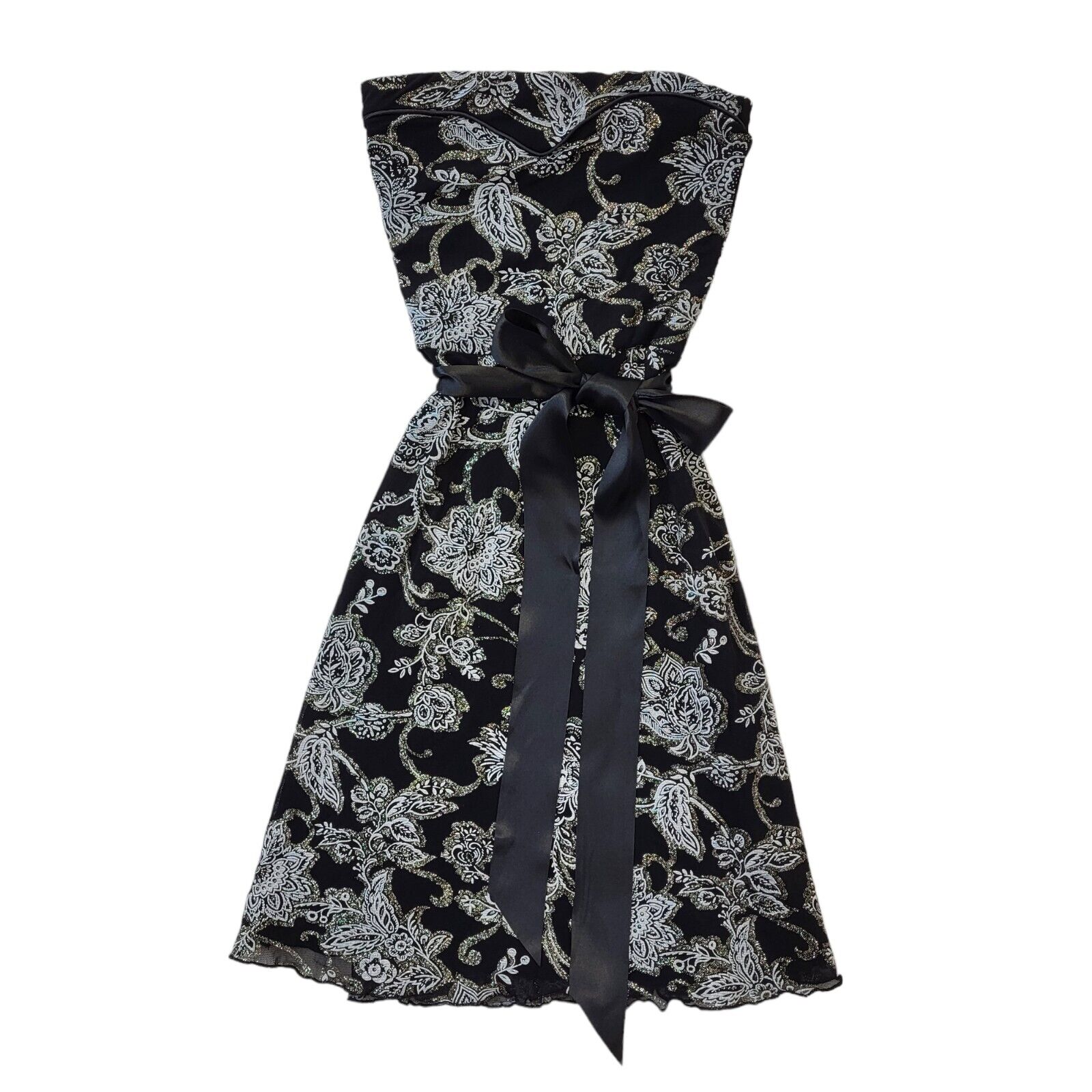 Jane Norman Y2K Vintage Strapless Black & Glittery Floral Belted Party Dress UK 10.