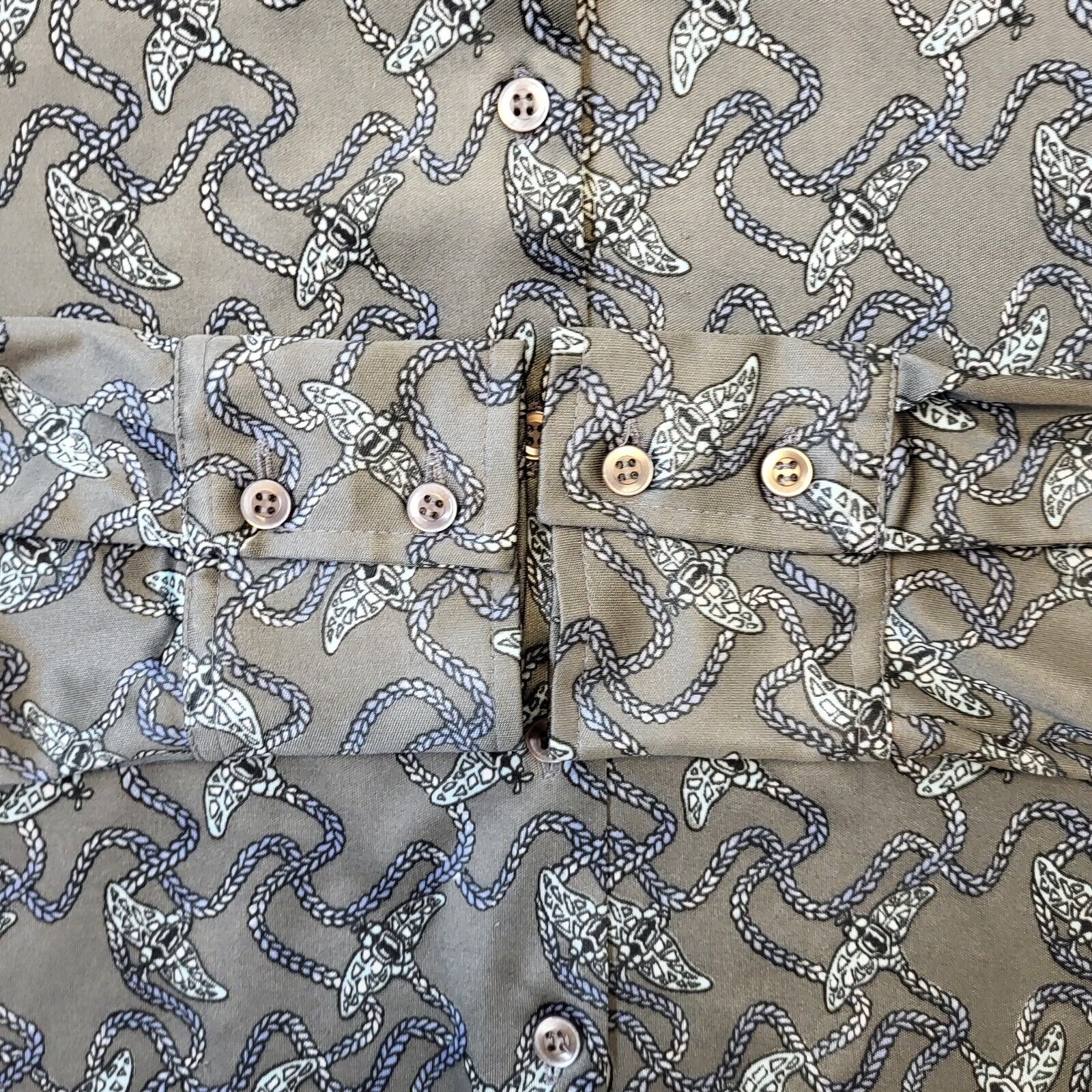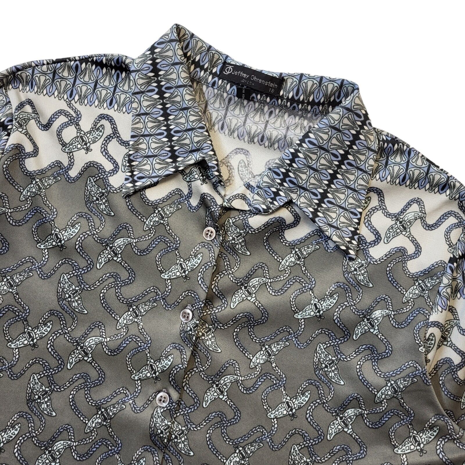 Jeffery Ohrenstein Vintage 70s Grey Moth Patterned Blouse Women's Size 18.