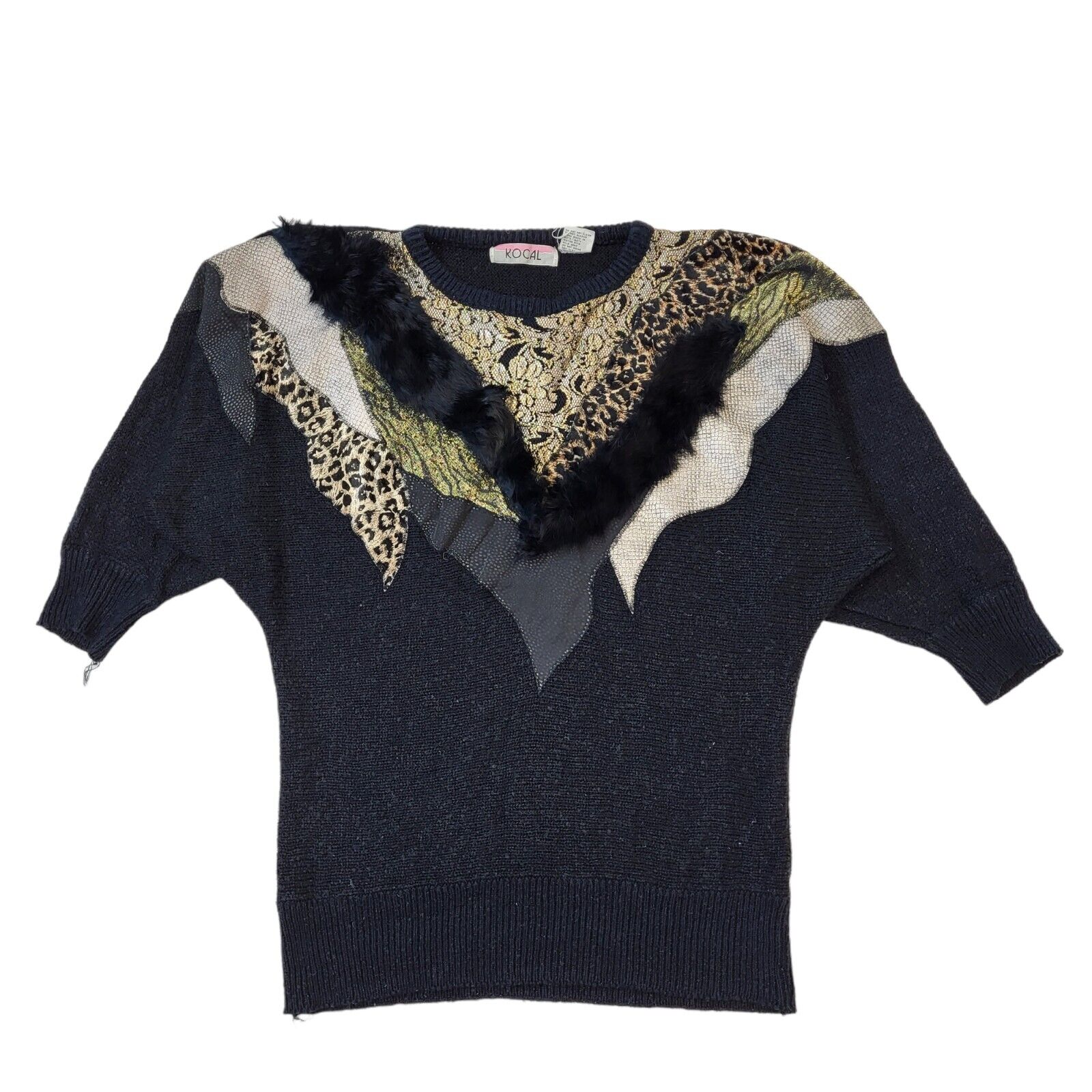 Kocal 80s Vintage Black & Gold Acrylic Jumper Women's Size S Eu 36.