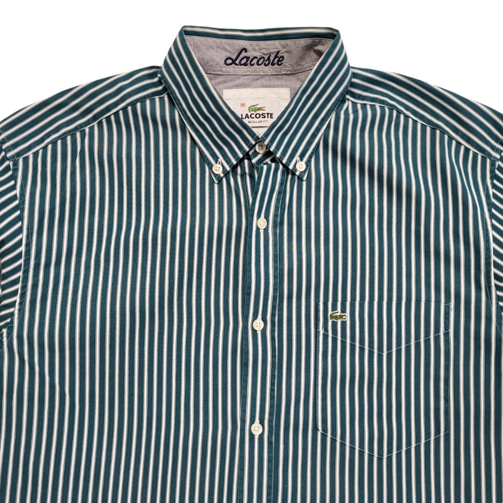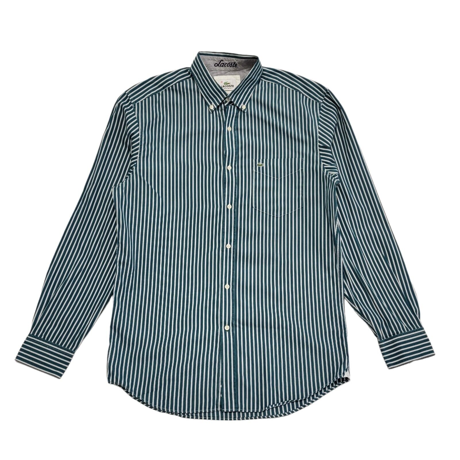 Lacoste 90's Vintage Green & White Striped Long Sleeve Shirt Mens UK Size M