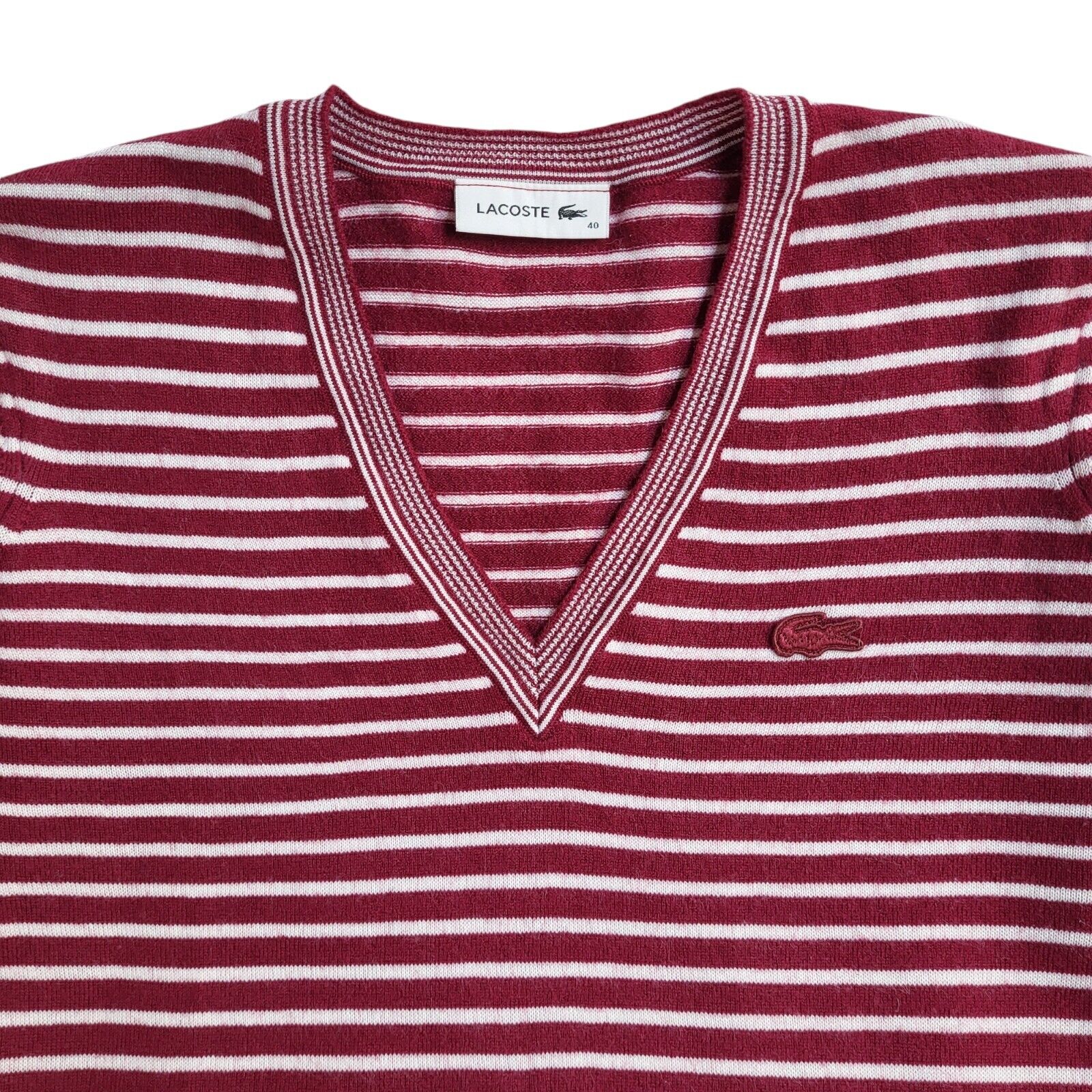 Lacoste Vintage 90's Red & White V-Neck Jumper UK Women's Size 10/12