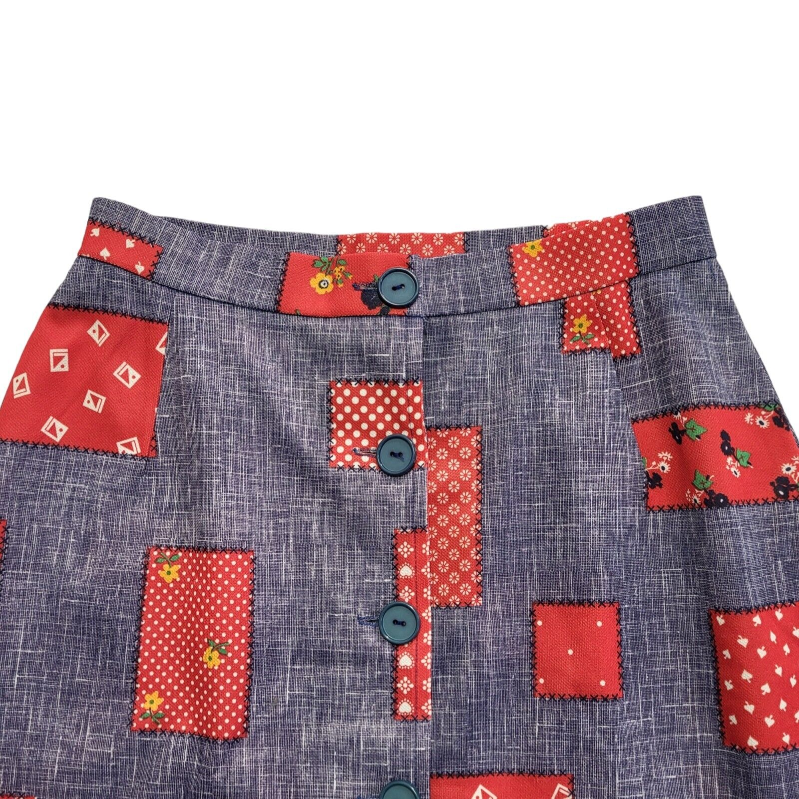 Lanz 70s Red & Blue Patchwork Button A-Line Knee Length Skirt Women's UK 8 W26