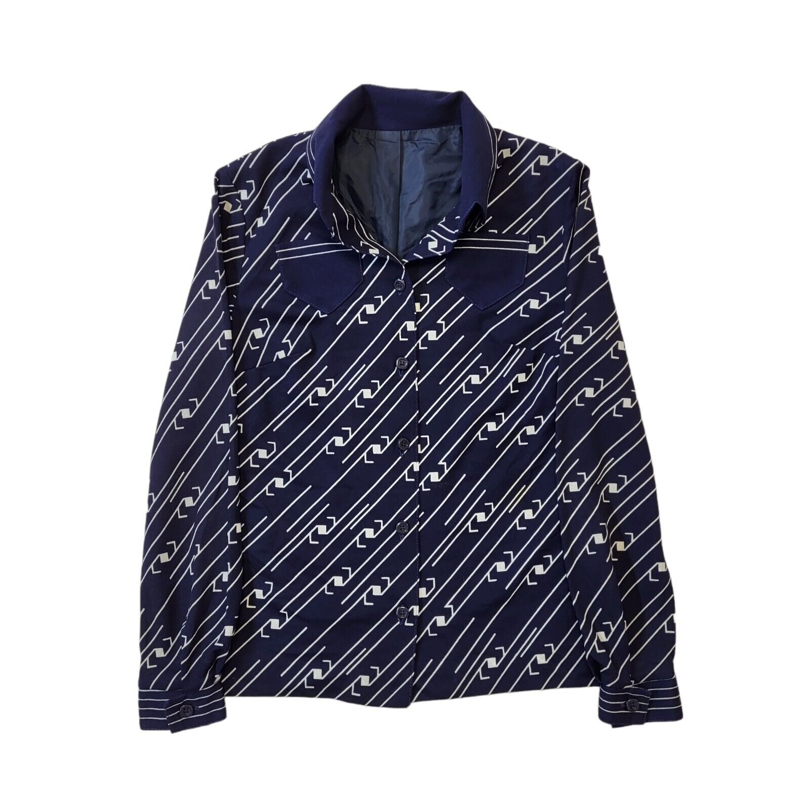 Lerose 70s Vintage Navy Blue & White Blouse Women's Size 14