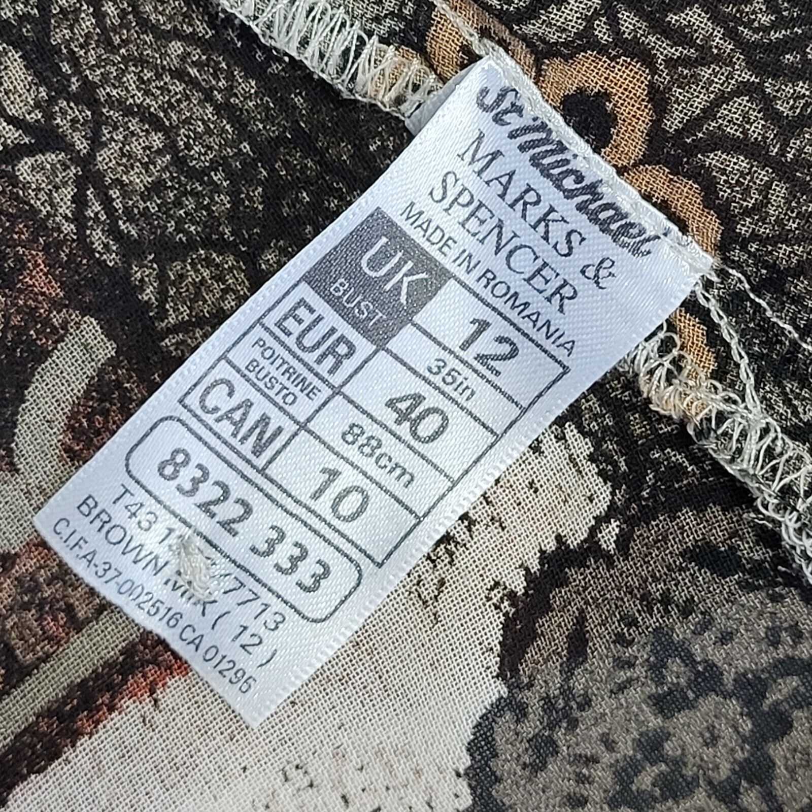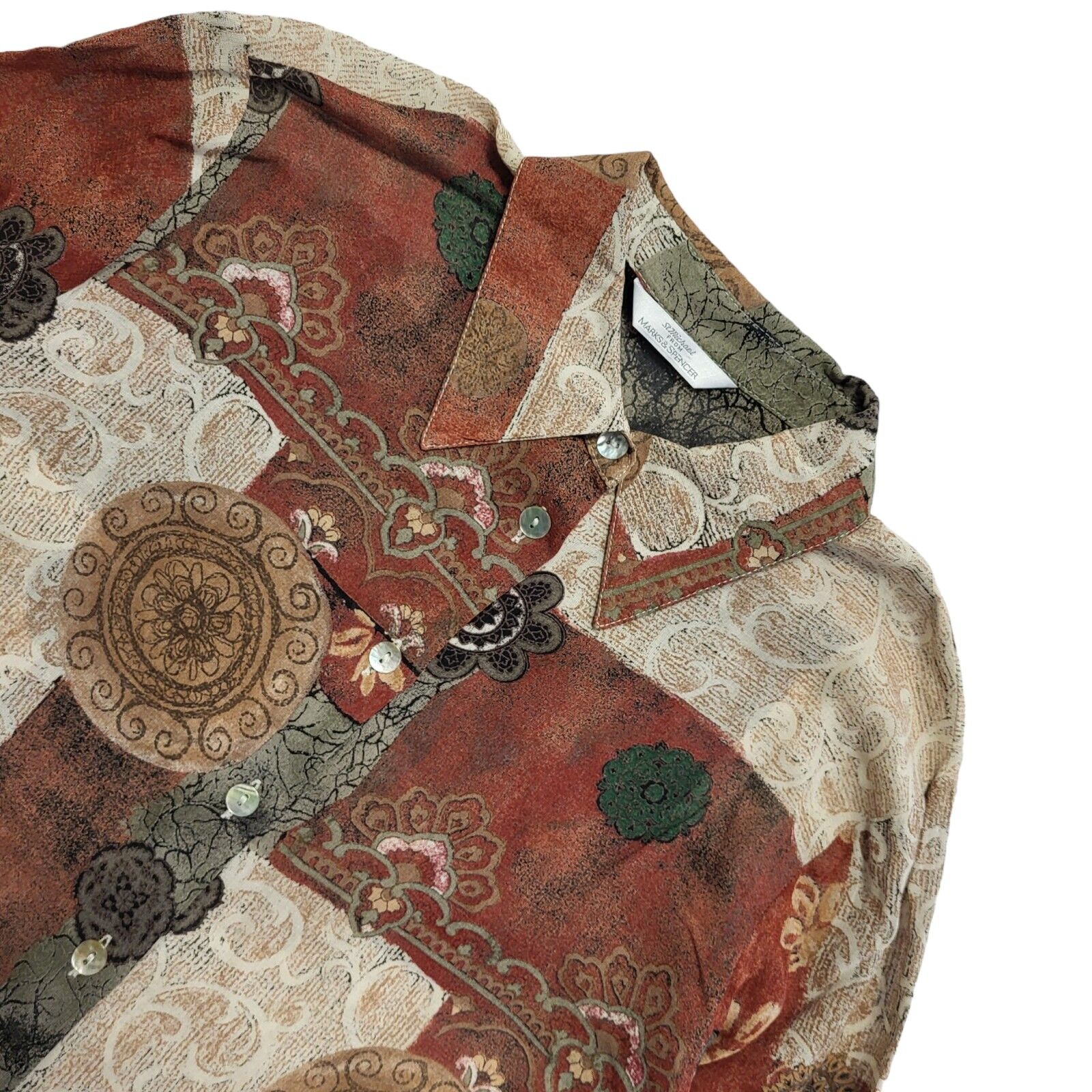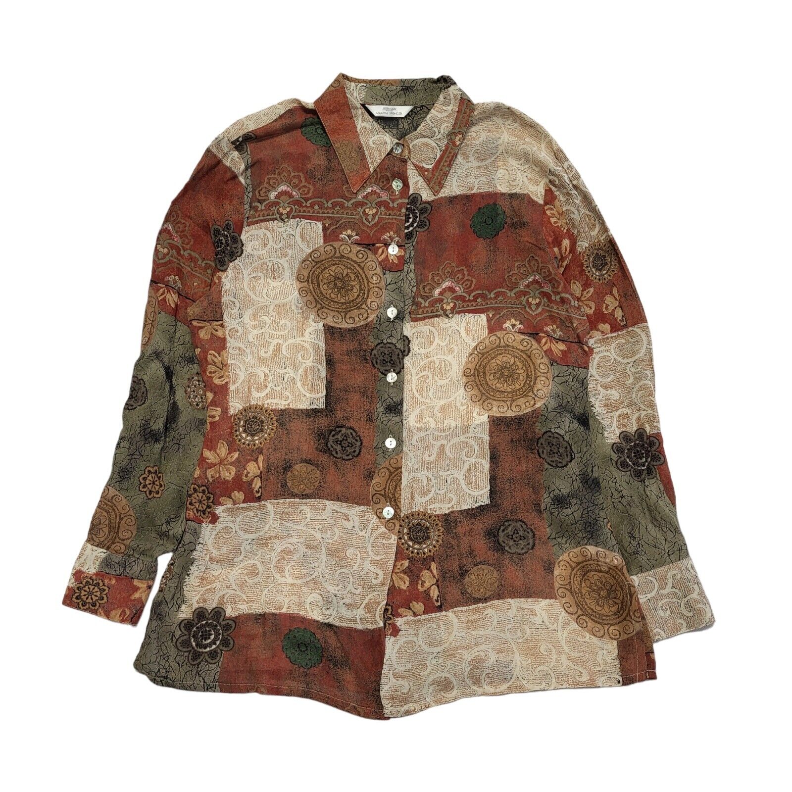 M&S Vintage 90's Brown & Beige Retro Long Sleeve Shirt Women's UK Size 12