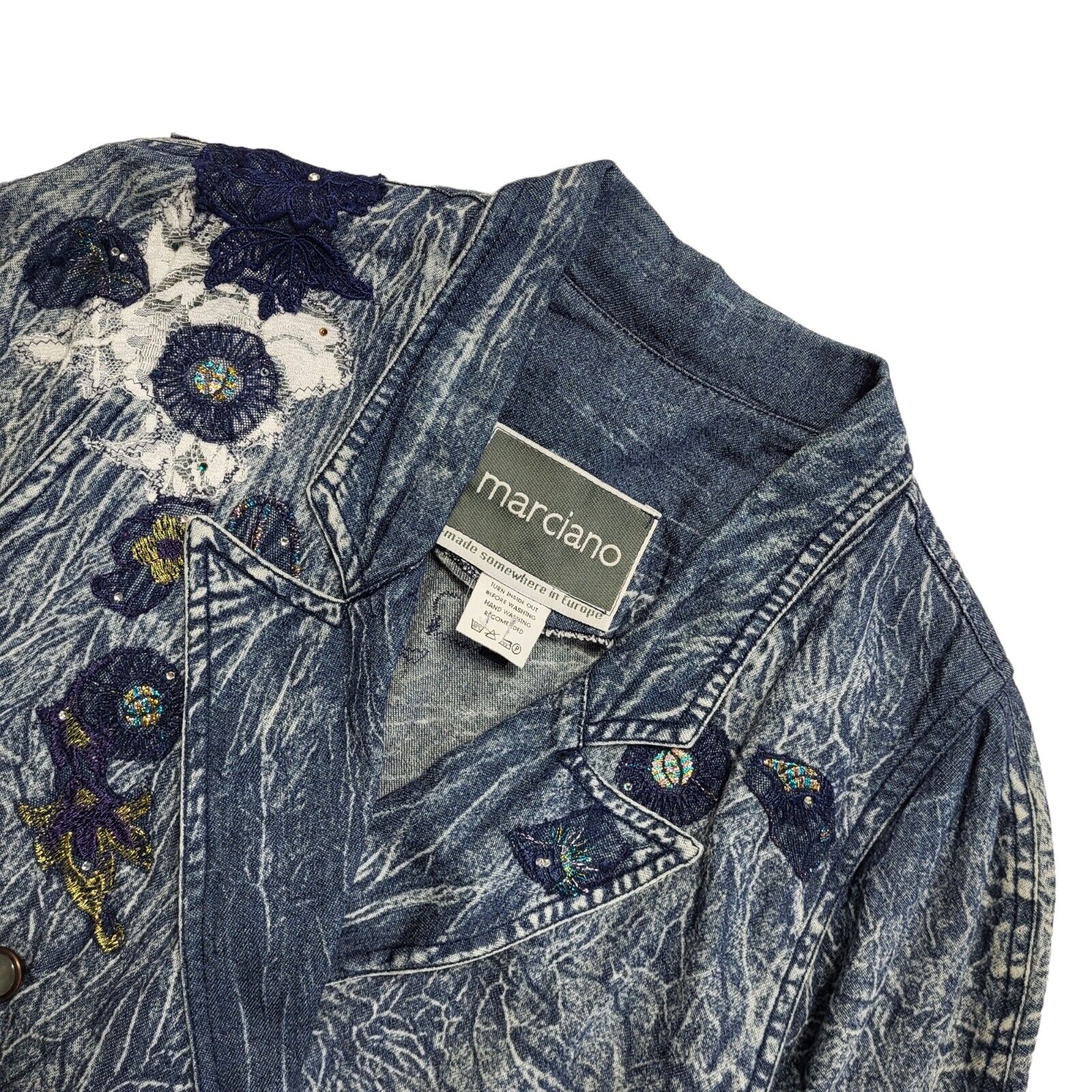 Marciano Bleach Blue 80s Vintage Button Denim Jacket Uk Women's Size 12