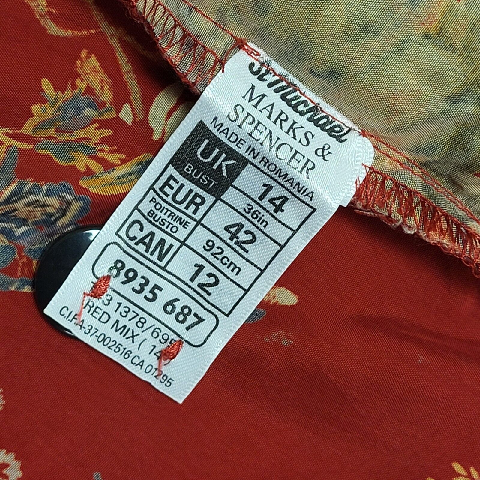 Marks And Spencer Vintage 80's Red & Brown Floral Shirt Womens UK 14