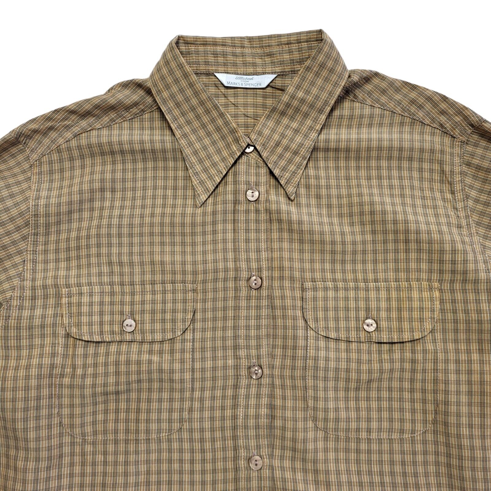 Marks and Spencer Vintage 90's Brown Checked Long Sleeve Shirt Womens Size 14