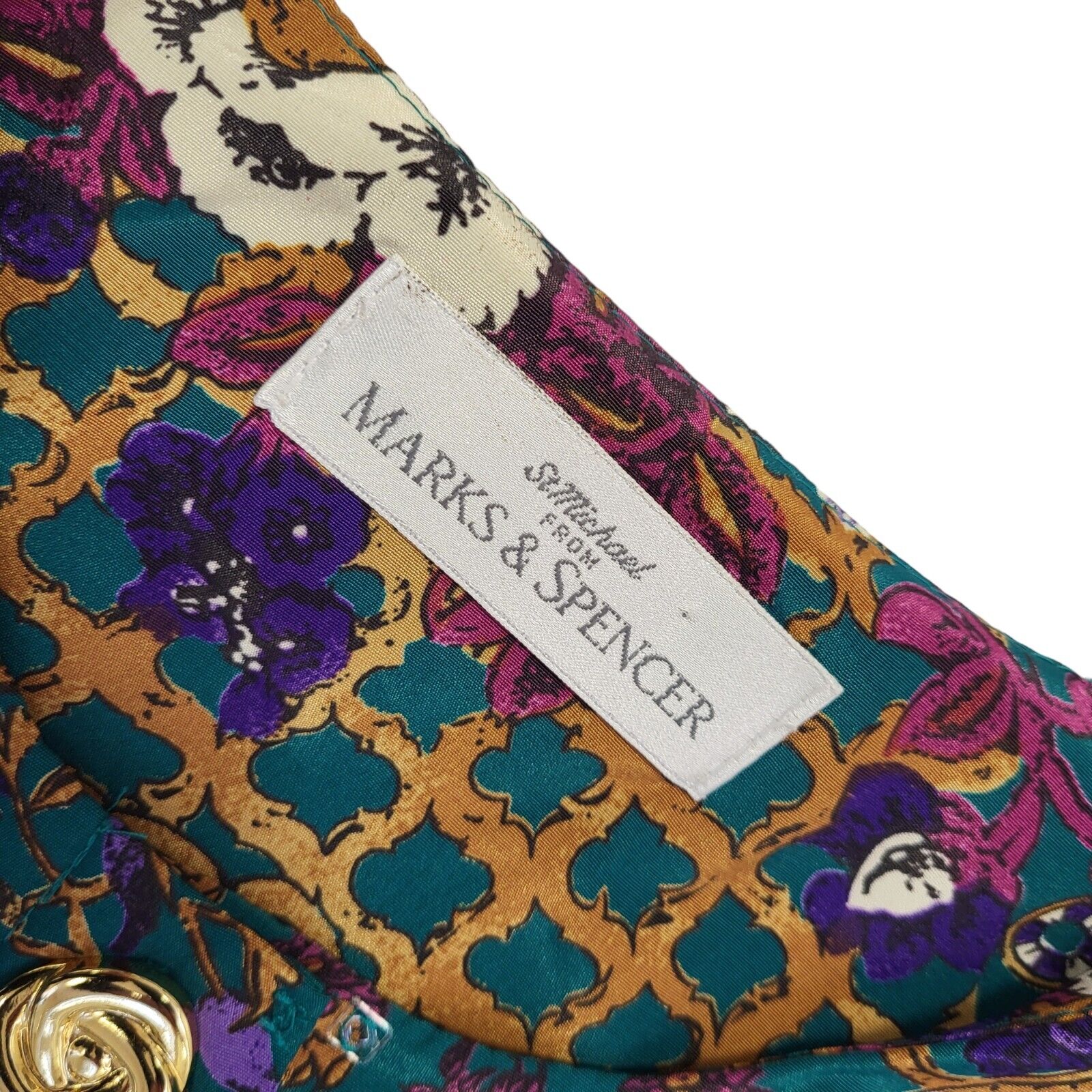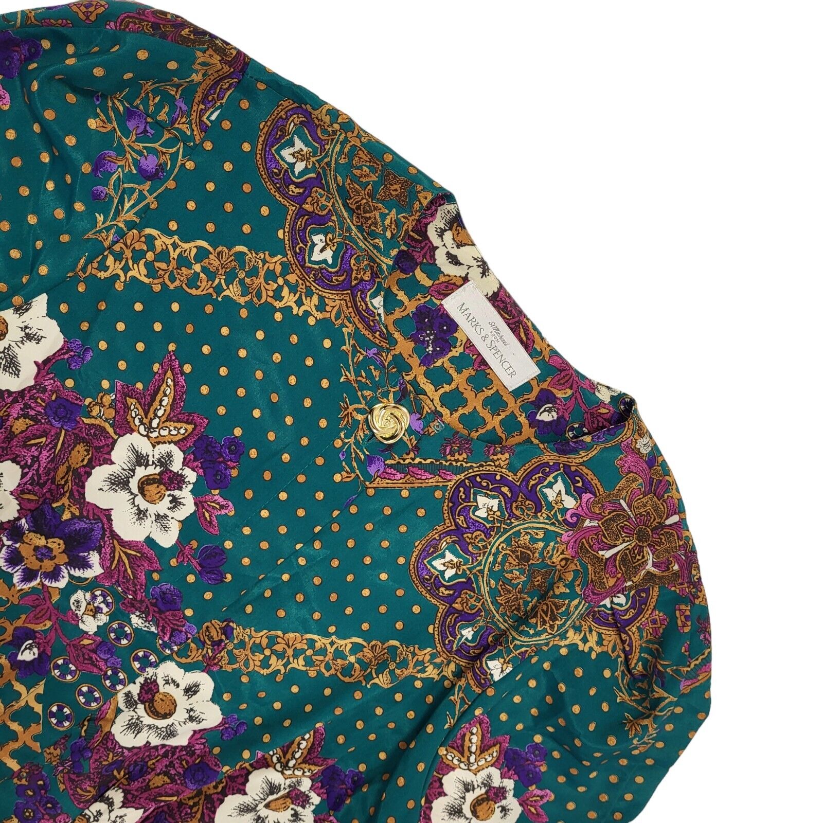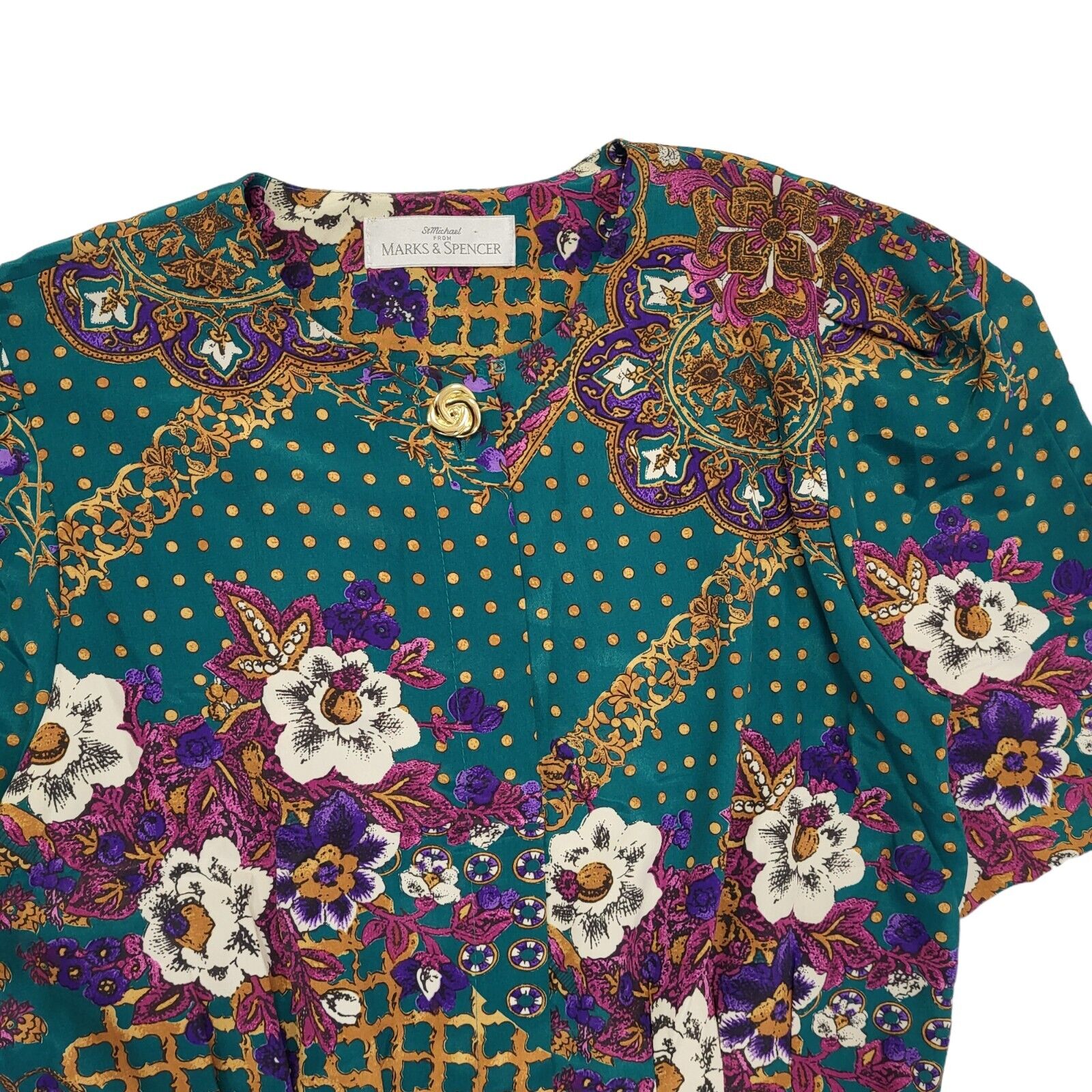Marks & Spencer 90s Vintage Green & Gold Buttoned Shift Dress Women's Size 12.