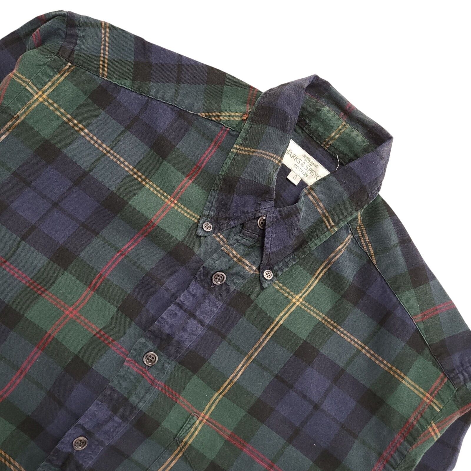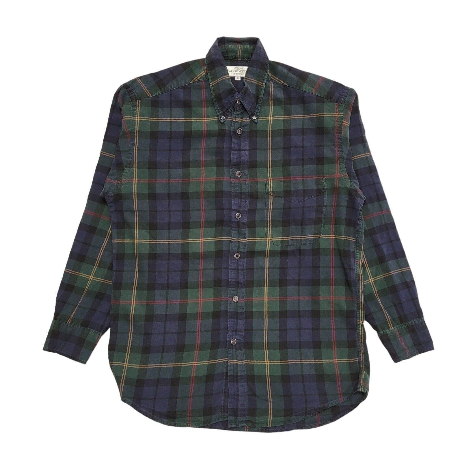 Marks & Spencer Vintage 90s Blue Green Check Long Sleeve Shirt Uk Men's Size S