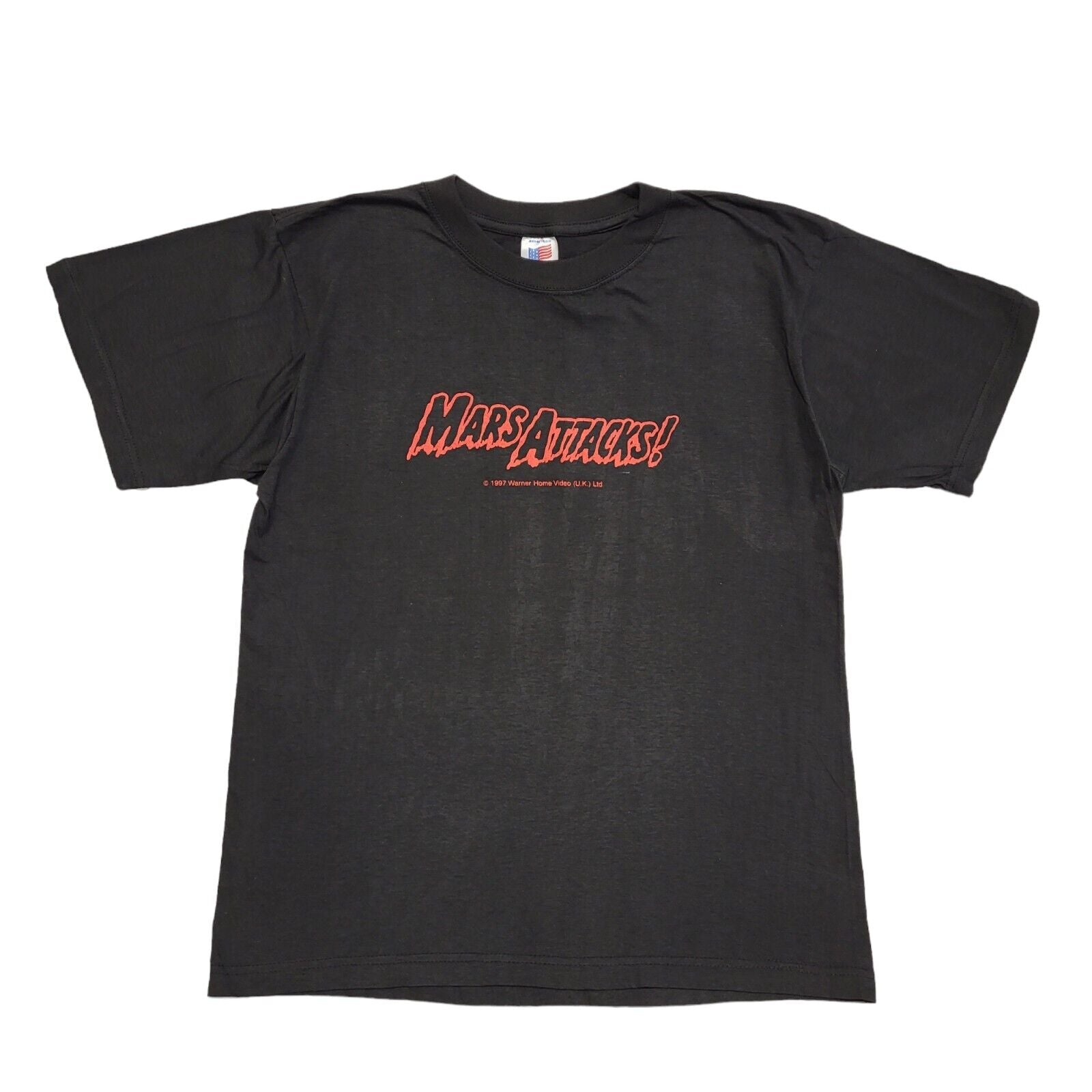 Mars Attack Flag Black Vintage 90s Short Sleeve T-Shirt Uk Men's L