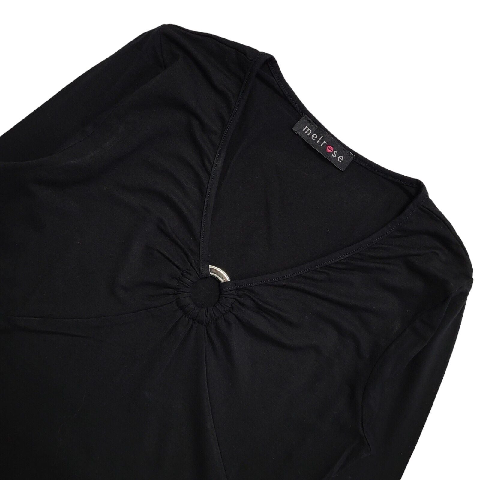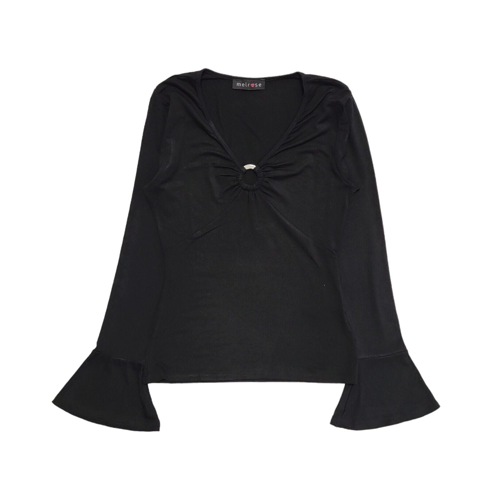 Melrose Vintage Y2K Black Metal Ring Detail Flared Sleeve Top Womens UK Size 10
