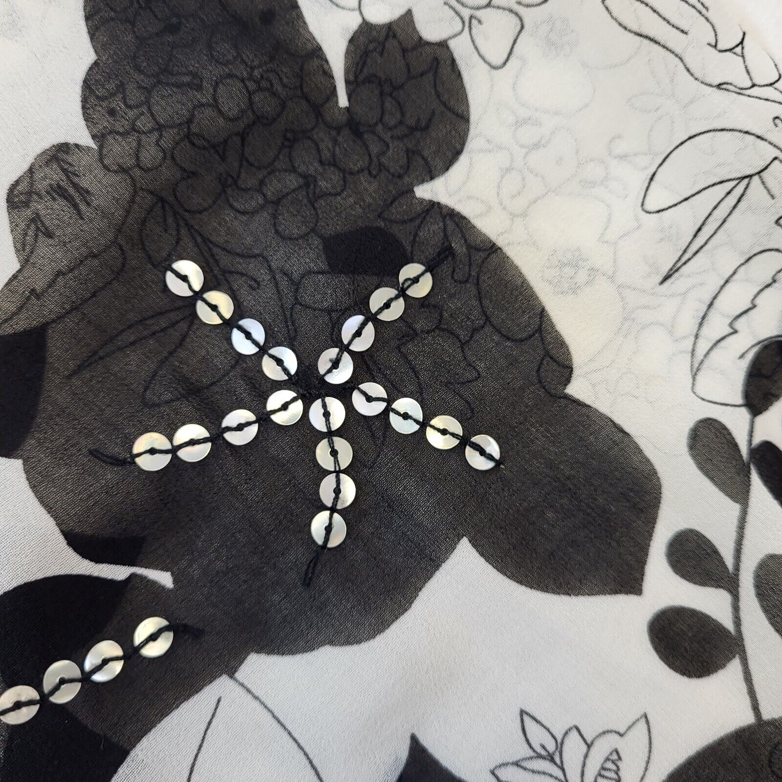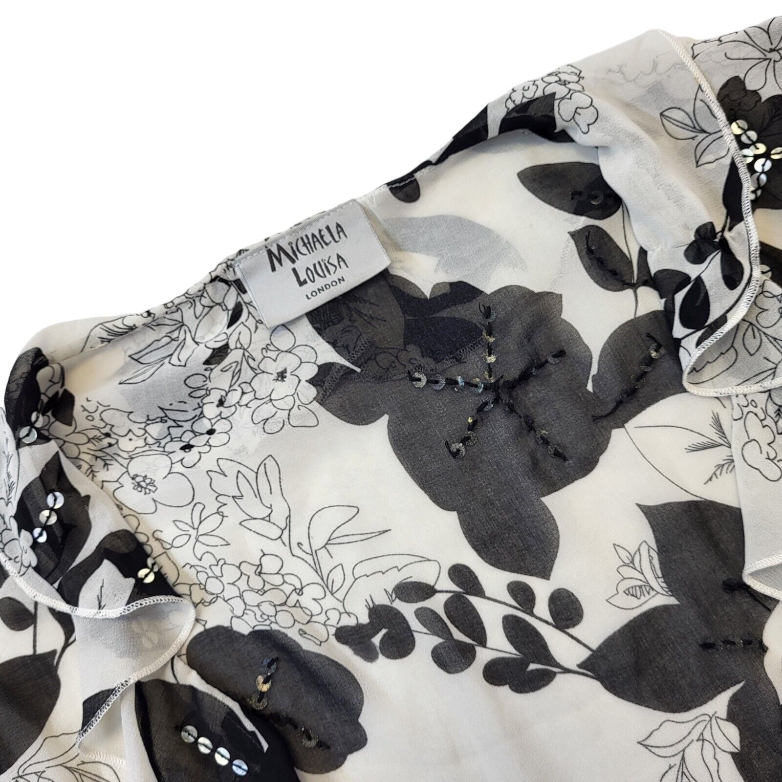 Michaela Louisa 90s Vintage Black & Cream Floral Crop Blouse With A Front Tie Womens Size 16.