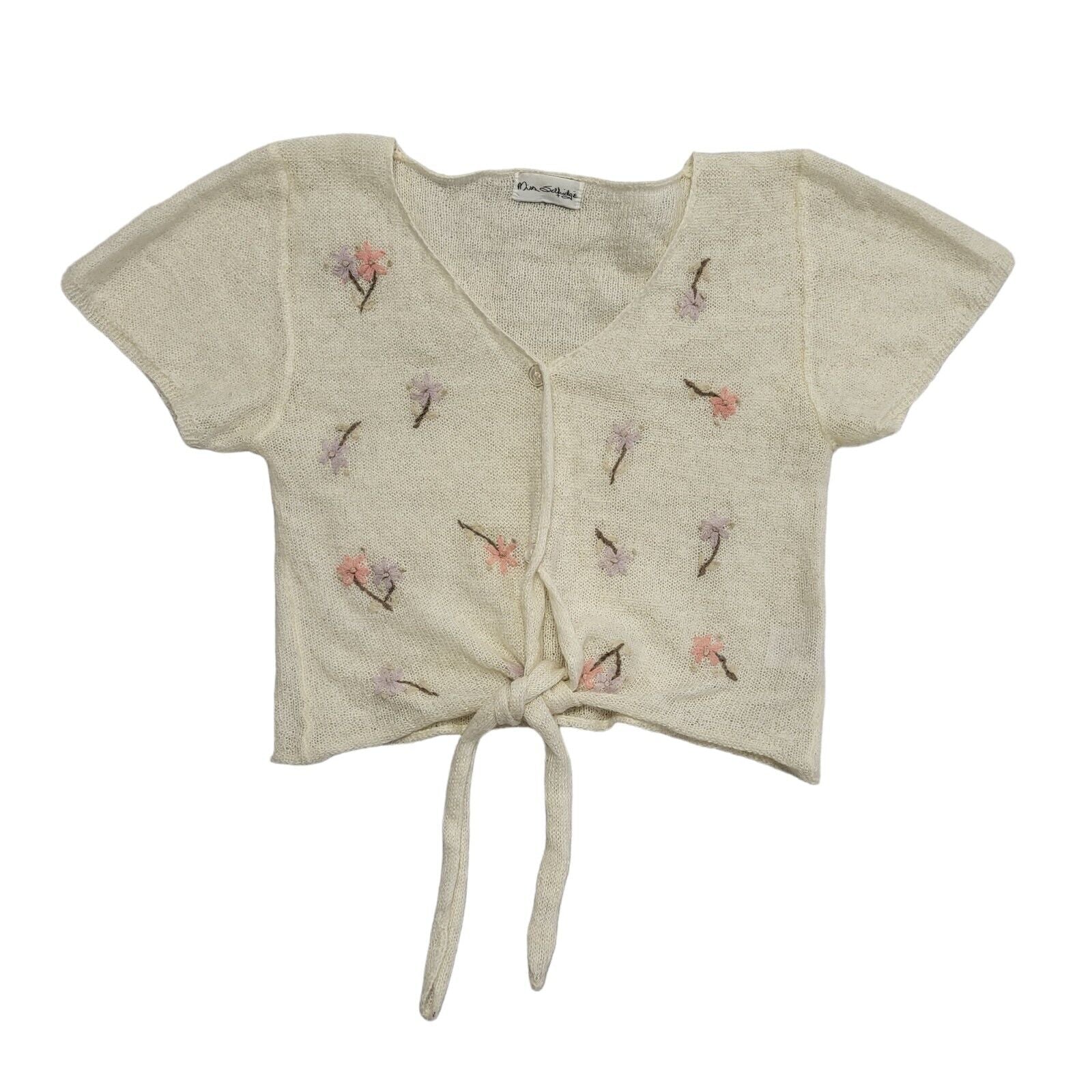 Miss Selfidge Vintage 90's Cream Button Tie Front Floral Cardigan Womens UK M/L