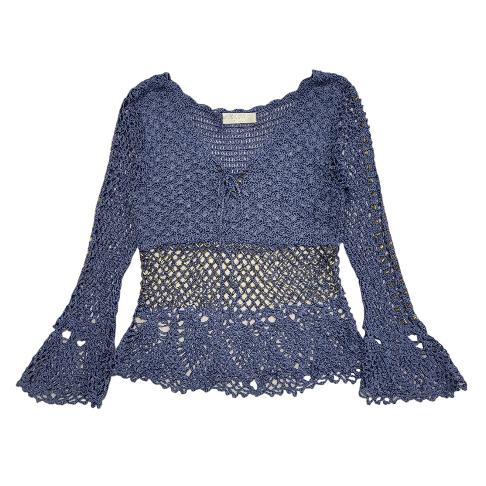Missy Fashion Y2k Purple Tie Front 3/4 Length Sleeve Womens Blouse Top UK Size 8
