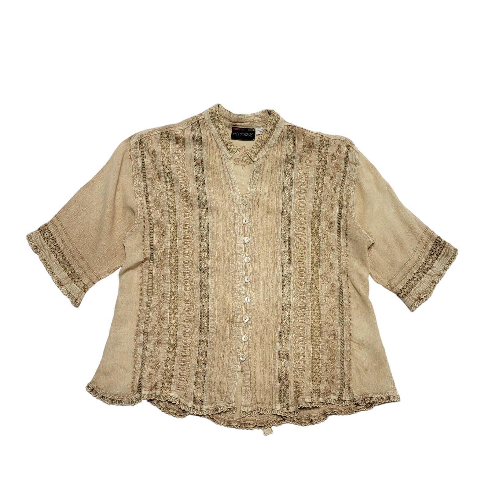 Mistique Vintage 80's Beige Button Up Short Sleeve Blouse Womens UK XL