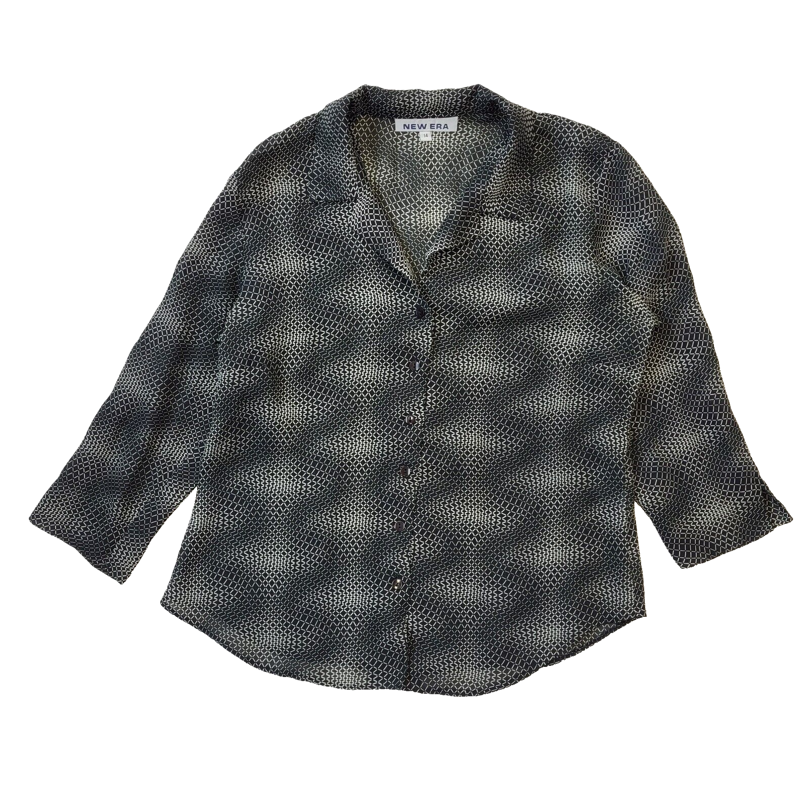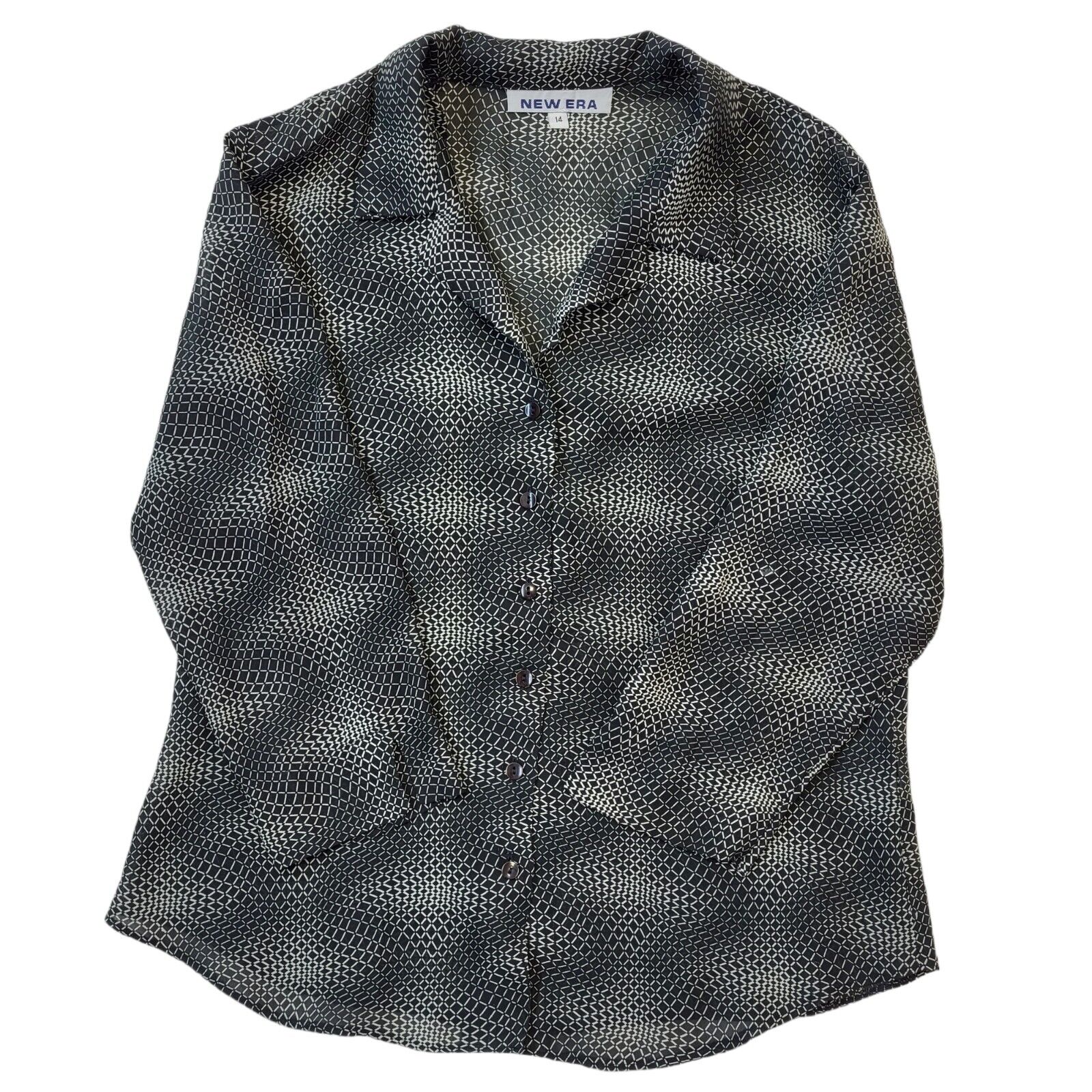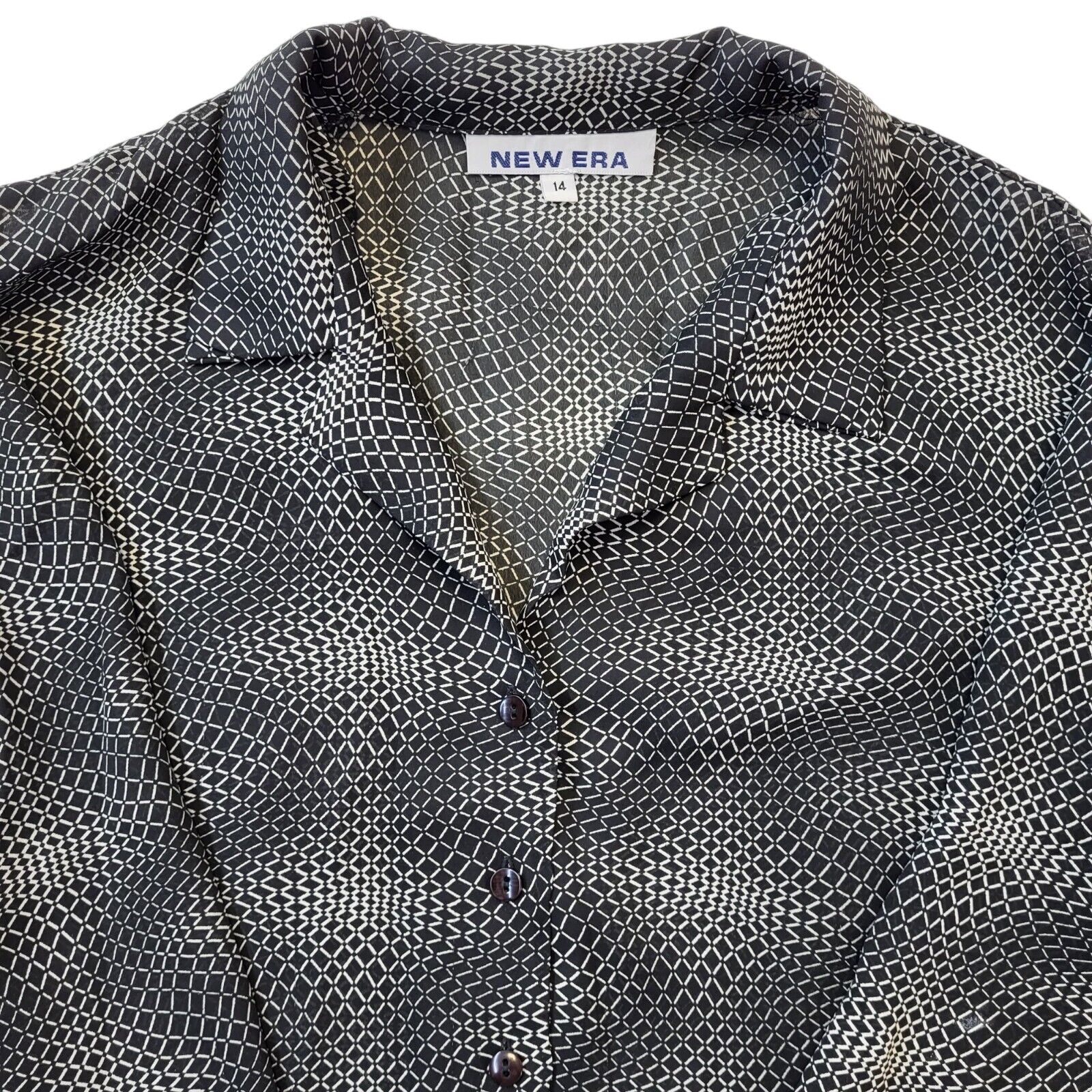 New Era 90s Vintage White & Black Long Sleeve Blouse Women's Size 14 Eu 42