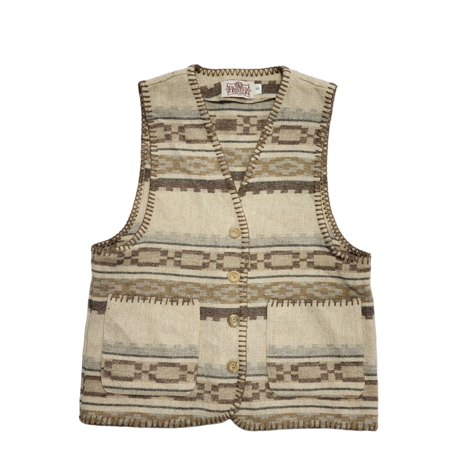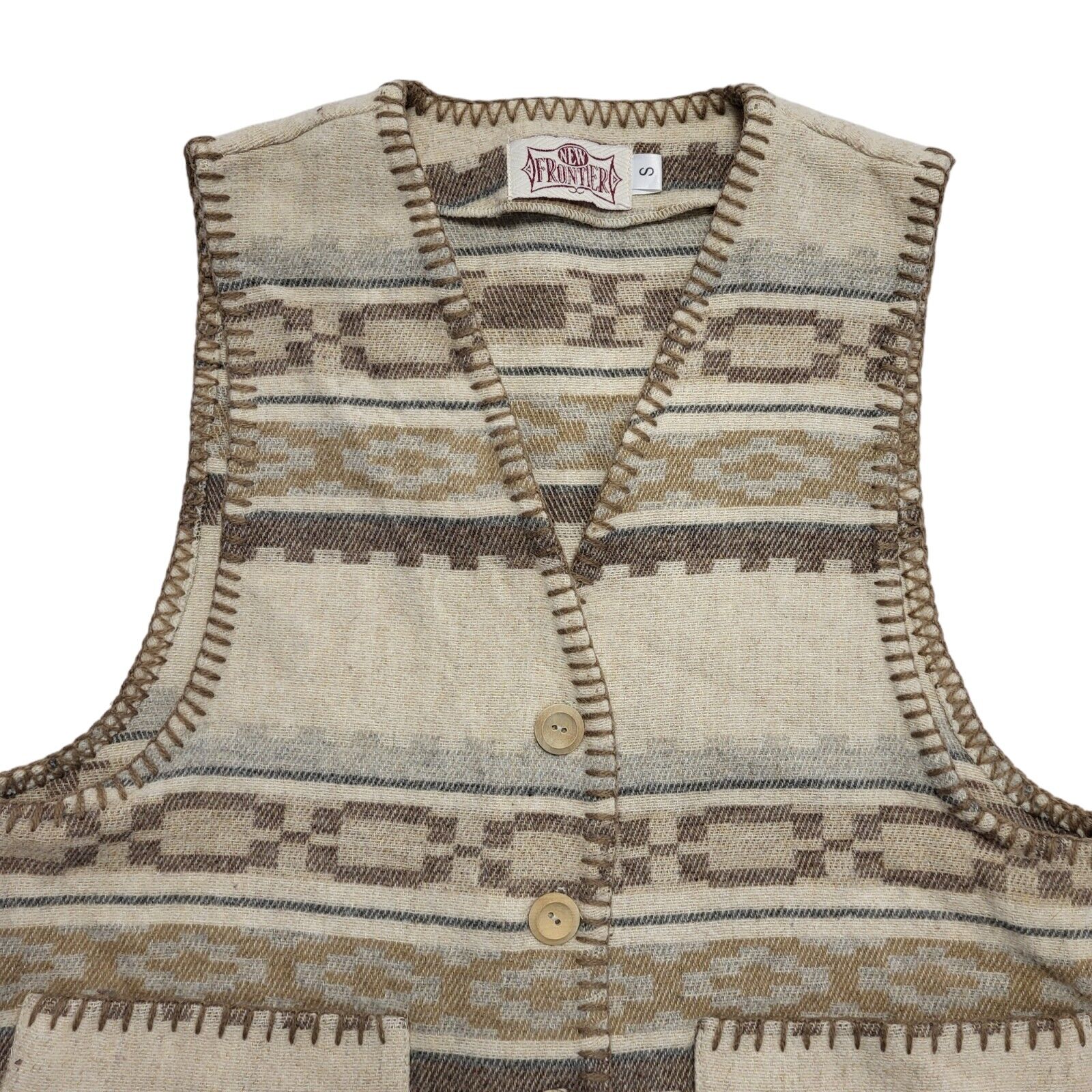 New Frontier 90s Beige Button Wool Blend Waistcoat Uk Women's Size Small.