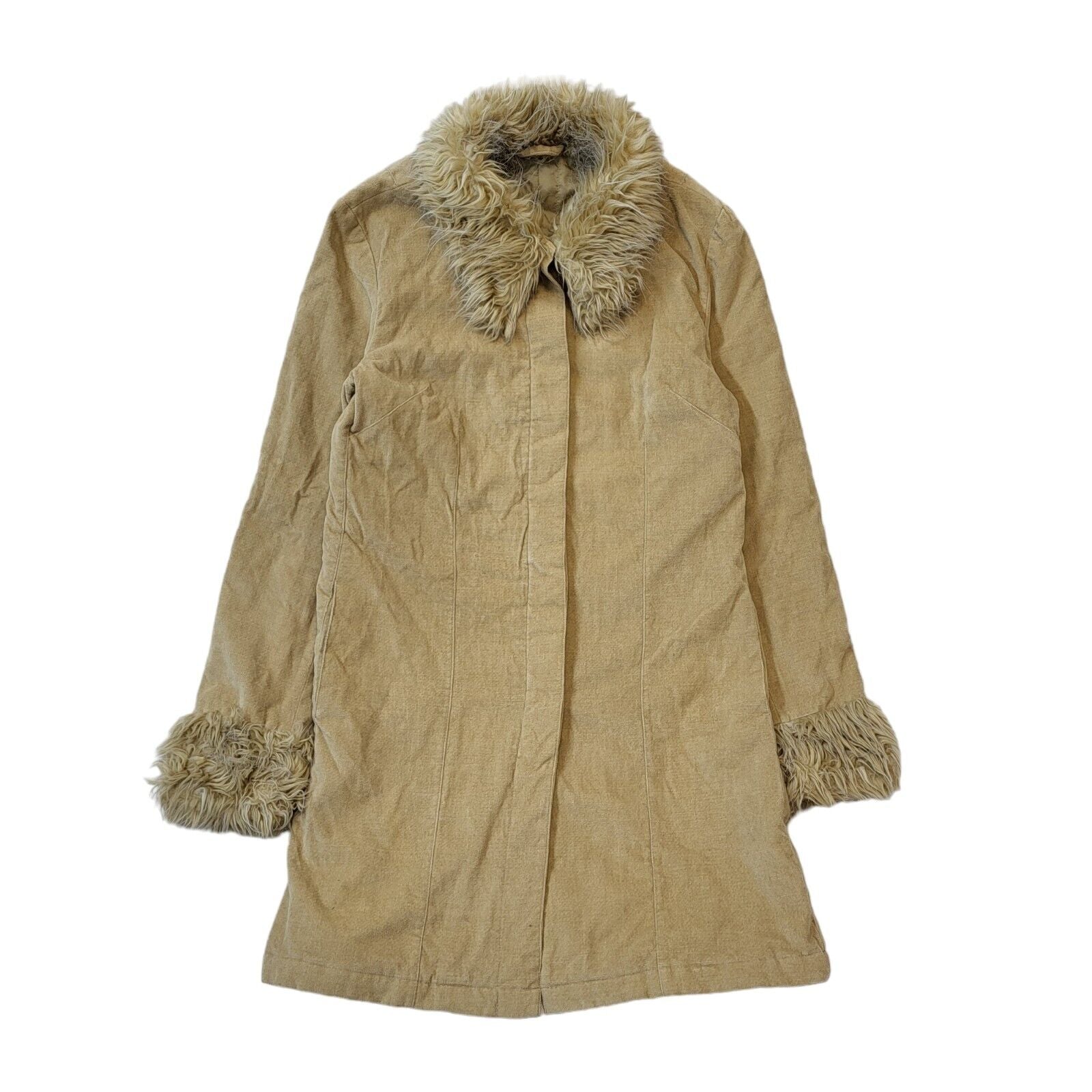 New Look 90s Vintage Beige Faux Fur Penny Lane Style Coat Uk Women's 10