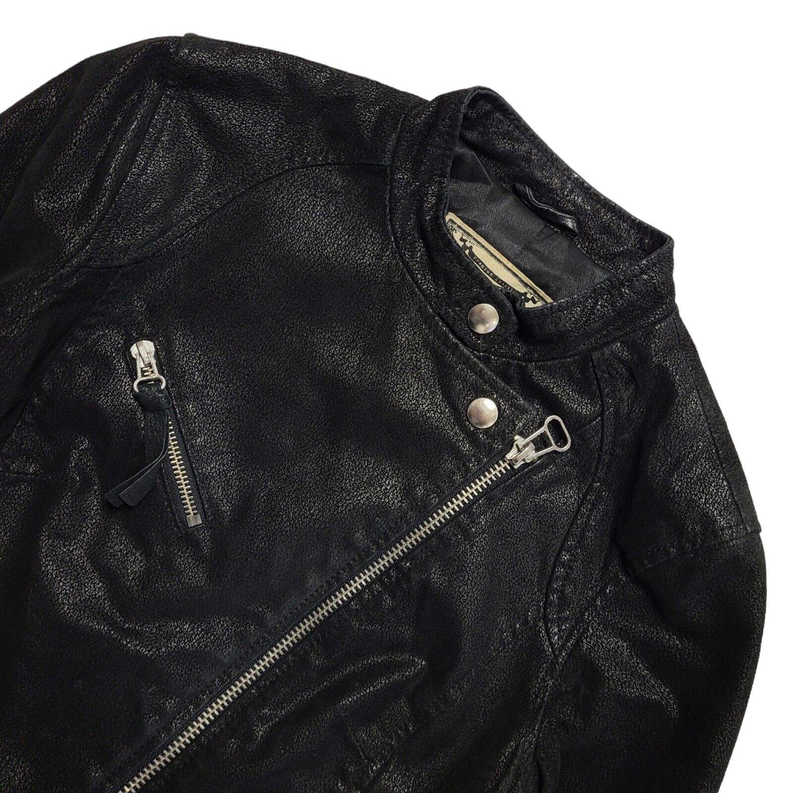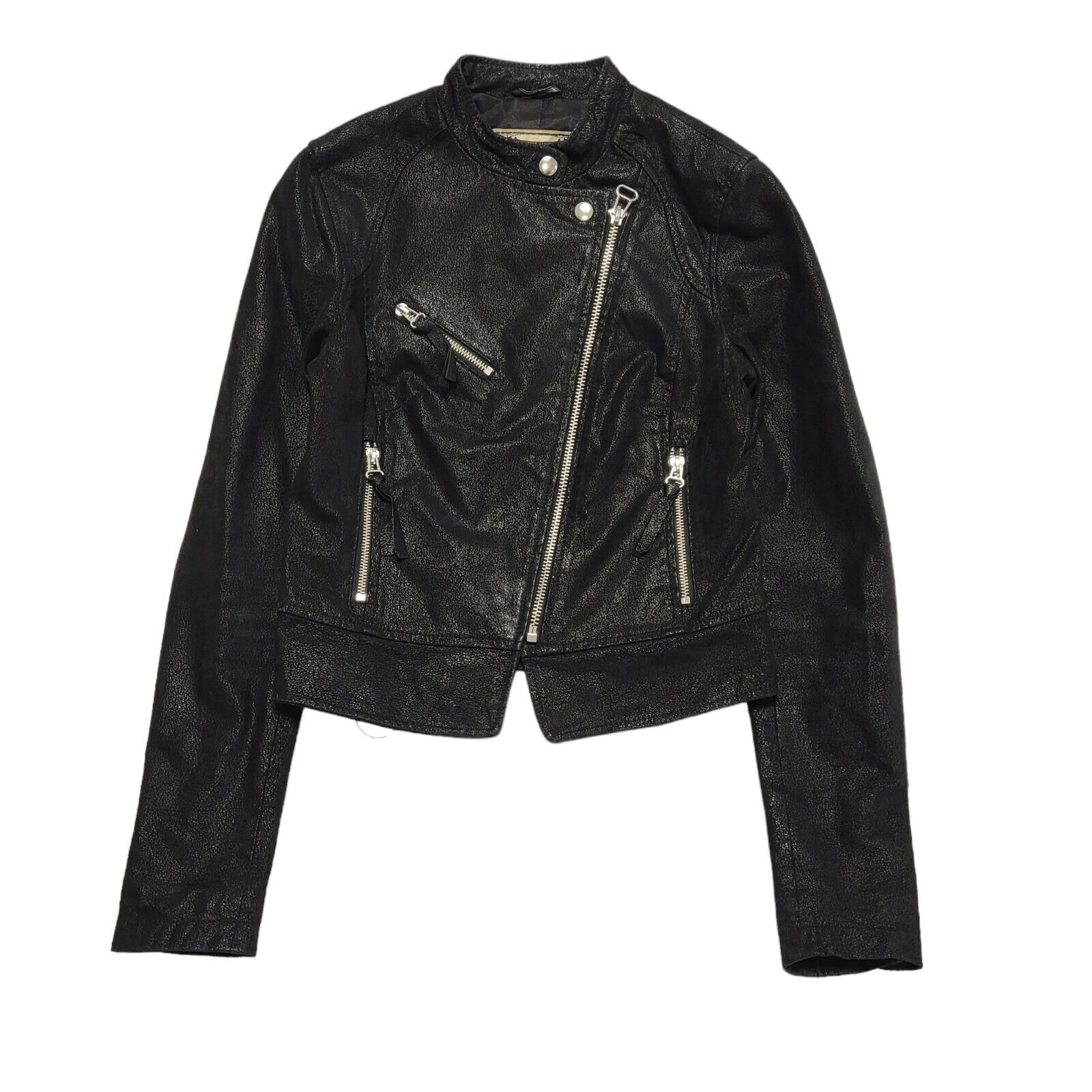 New Look Black Zipped Leather Jacket Uk Women's Size 8