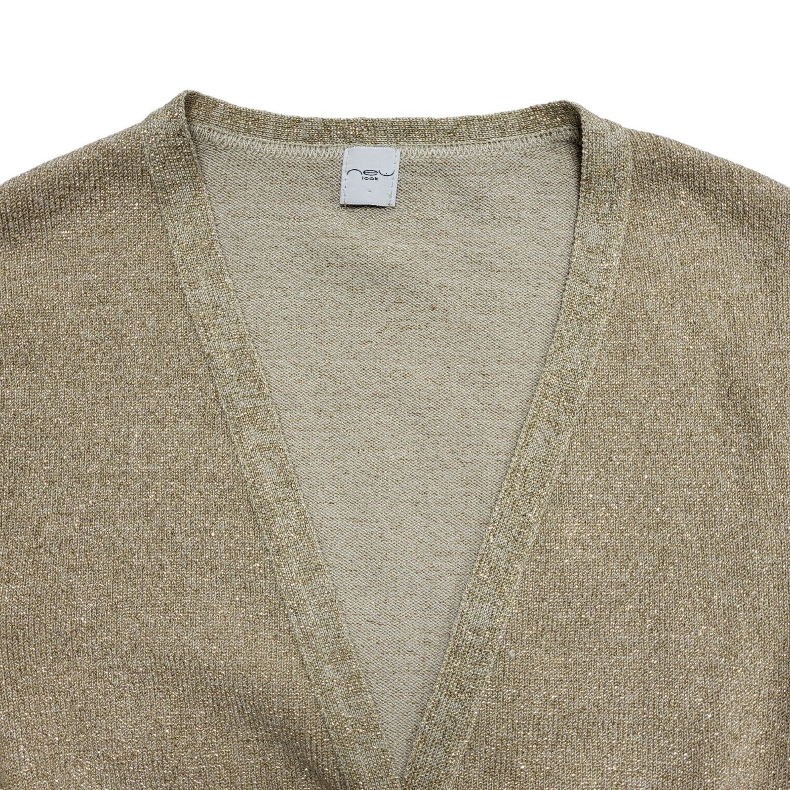 New Look Y2K Gold Glitter Short Sleeve Cropped Cardigan Womens UK 12.