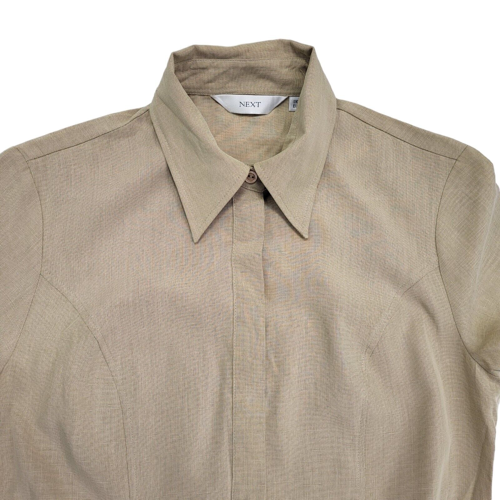 Next 90s Vintage Beige Buttoned Belted Shirt Dress Women's Size M 10