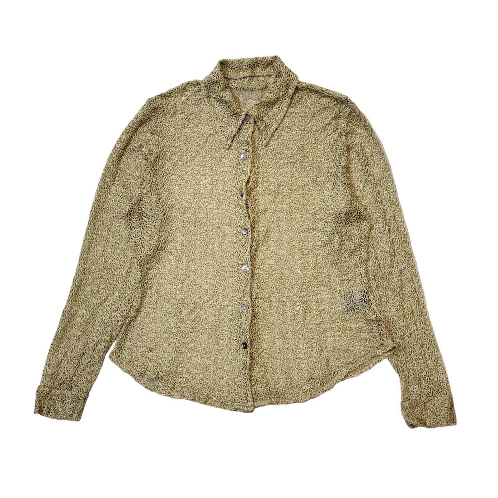 Next 90s Vintage Gold Mesh Button Up Blouse Women's Size 14.