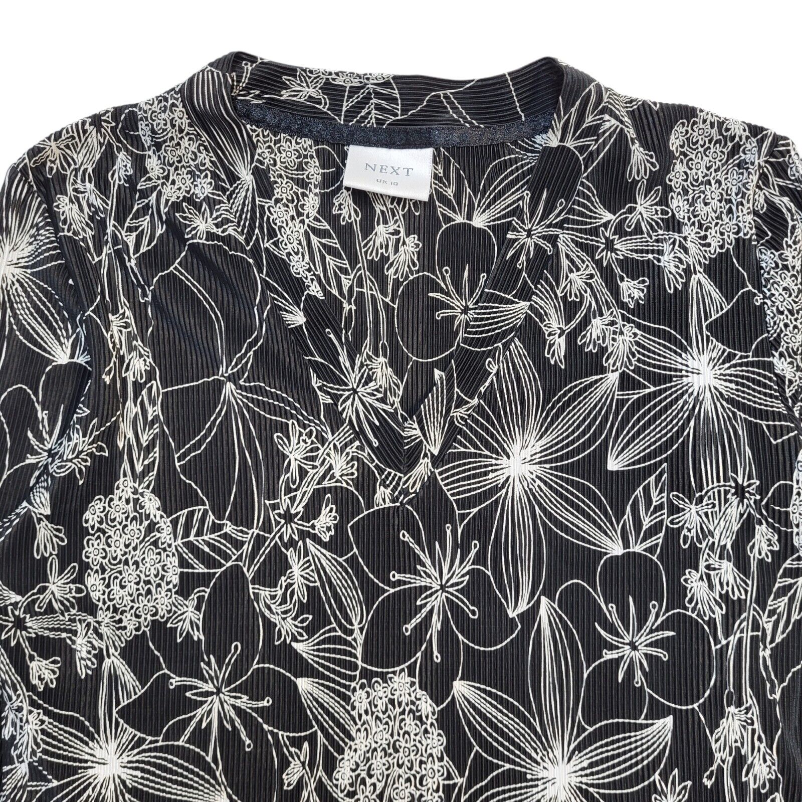 Next Vintage Y2K Black & White Floral Long Sleeve Women's UK 10