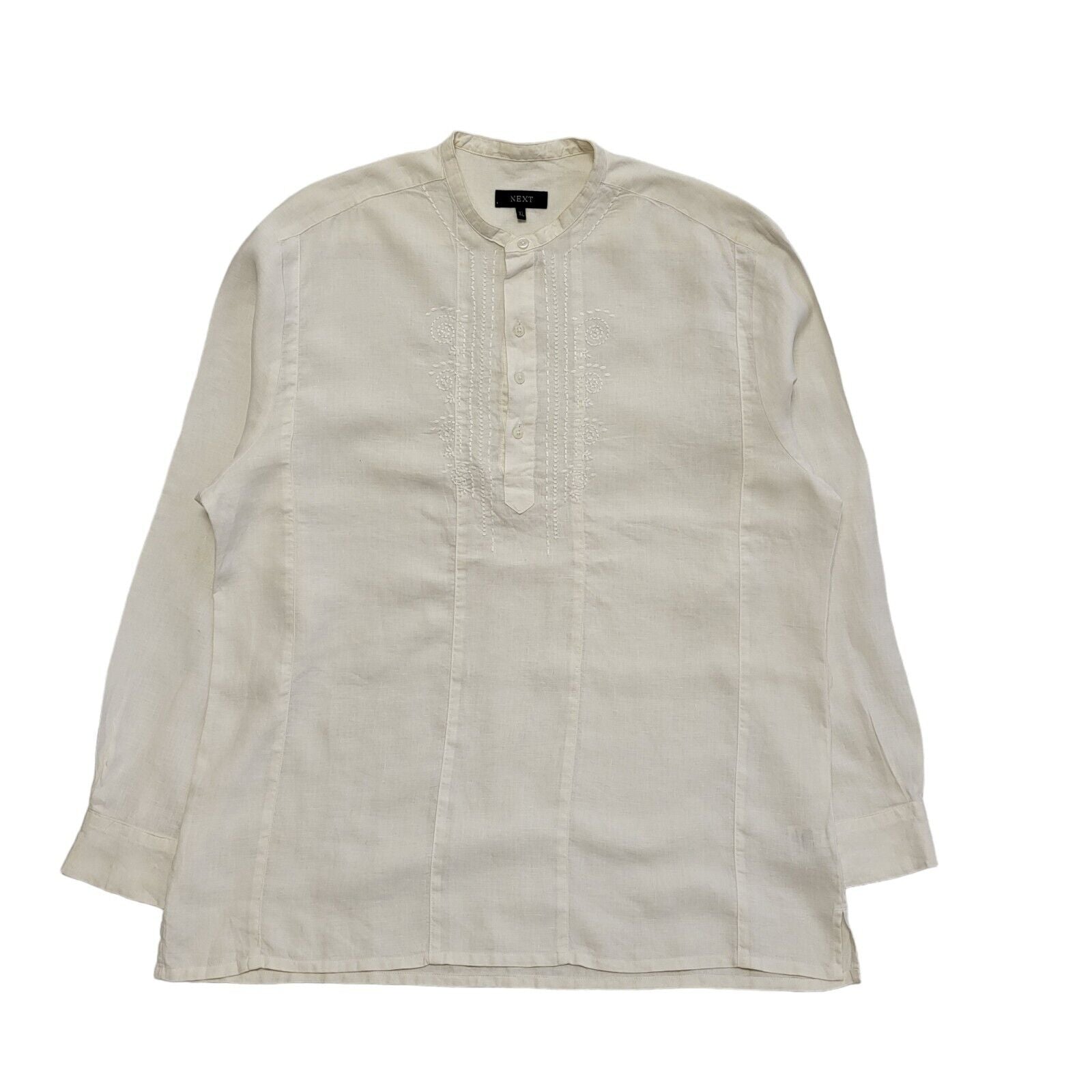 Next Vintage Y2K White Relaxed Fit Round Neck Linen Shirt Men's Size XL