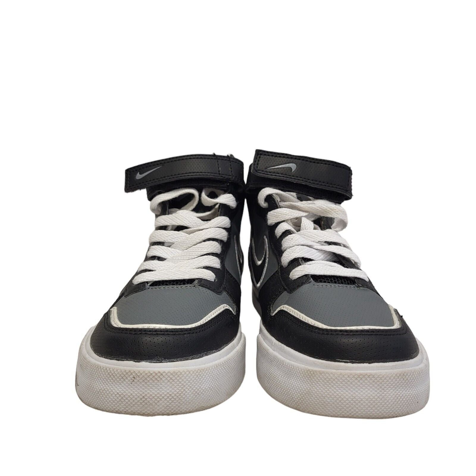 Nike Black Grey Mid Top Leather Casual Trainers Uk Kid's Size 5.5