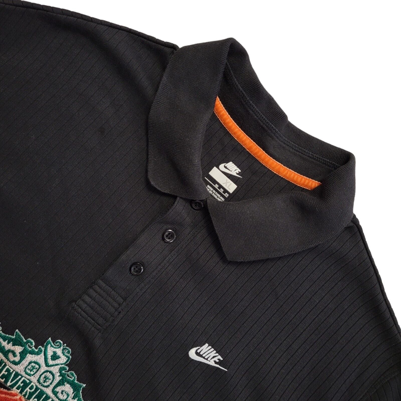 Nike Liverpool FC Vintage 90's Black Sports Short Sleeve Polo Shirt Uk Men's XL