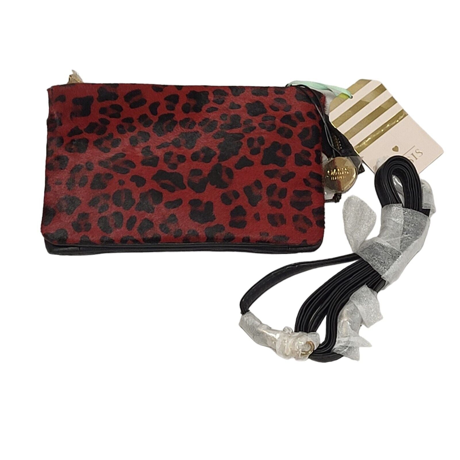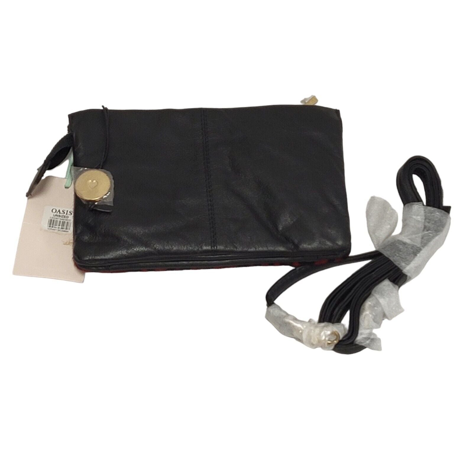 Oasis Red Black Zip Leather Micro Hand Bag Uk Women's Size 4.5" x 7.5" Bnwt