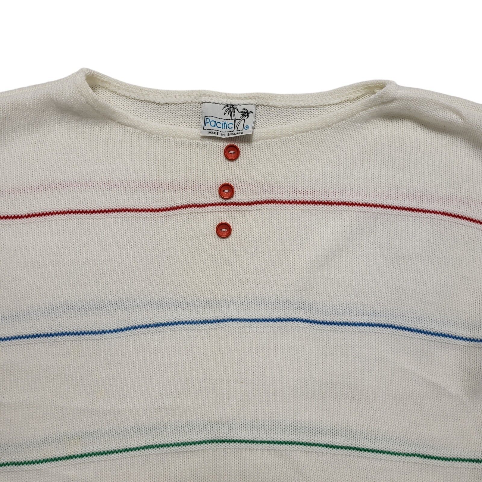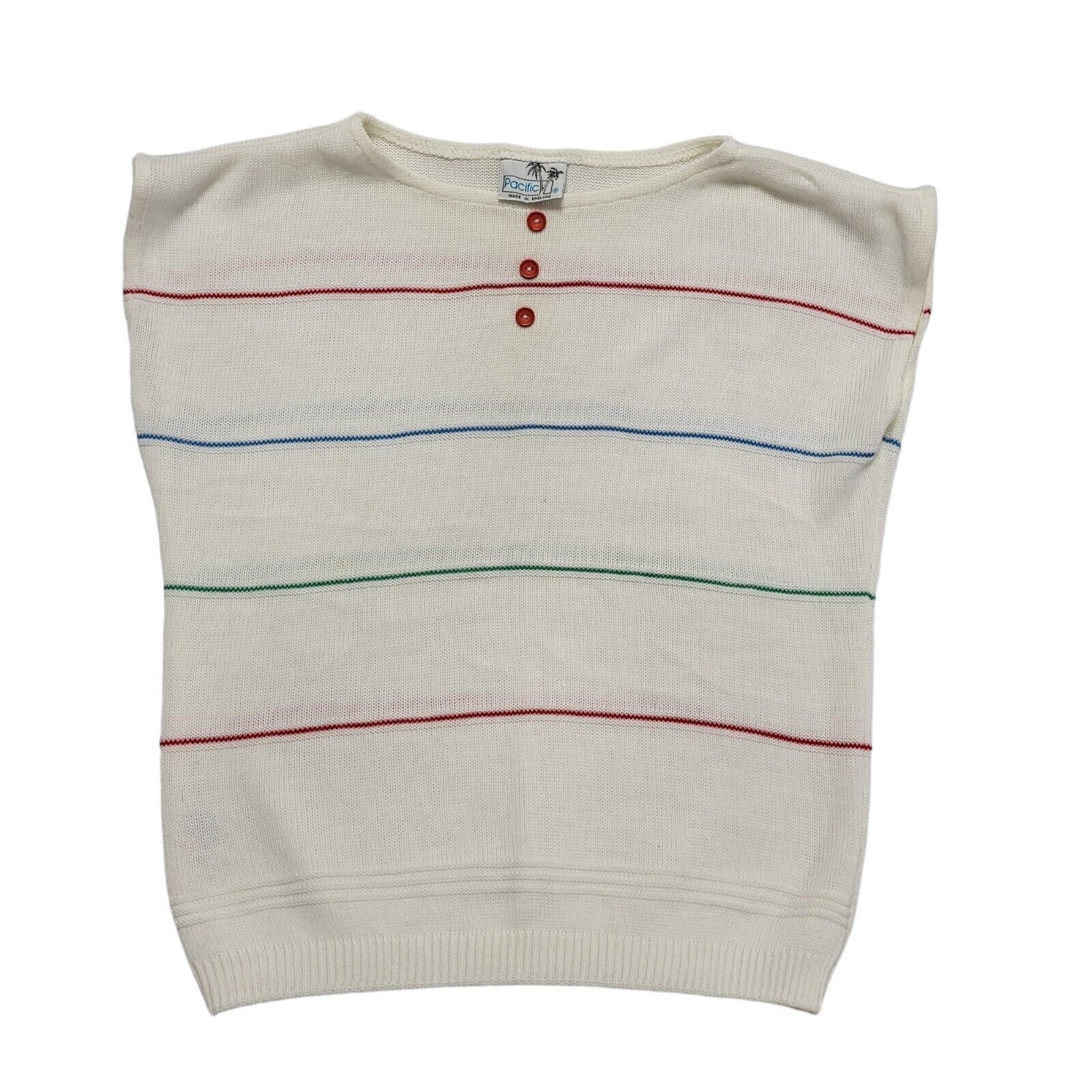 Pacific 80s Vintage White Striped Sleeveless Top Uk Women's Size 16