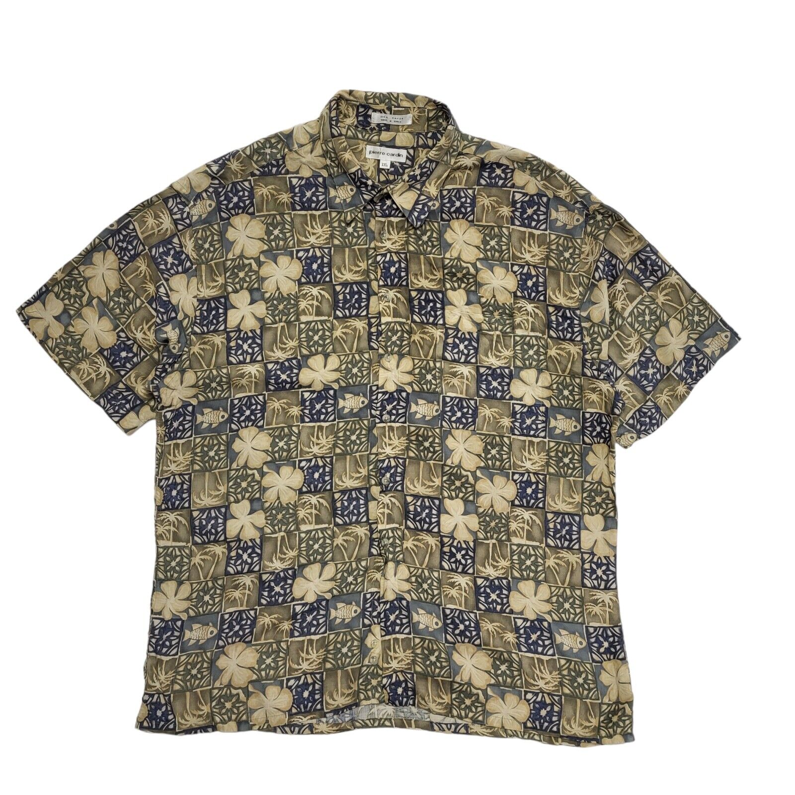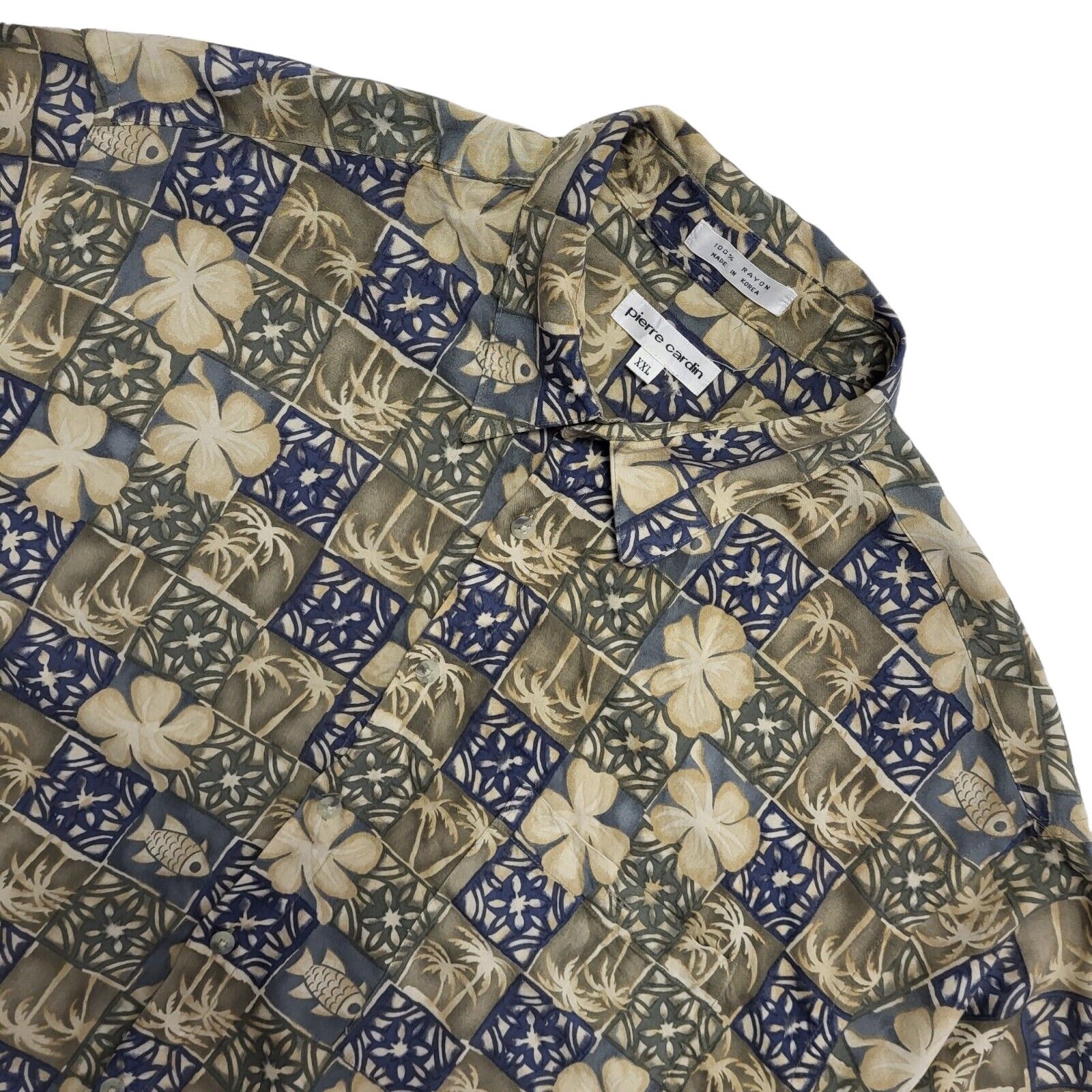 Pierre Cardin 90's Blue & Brown Short Sleeve Retro Shirt Mens UK Size XXL