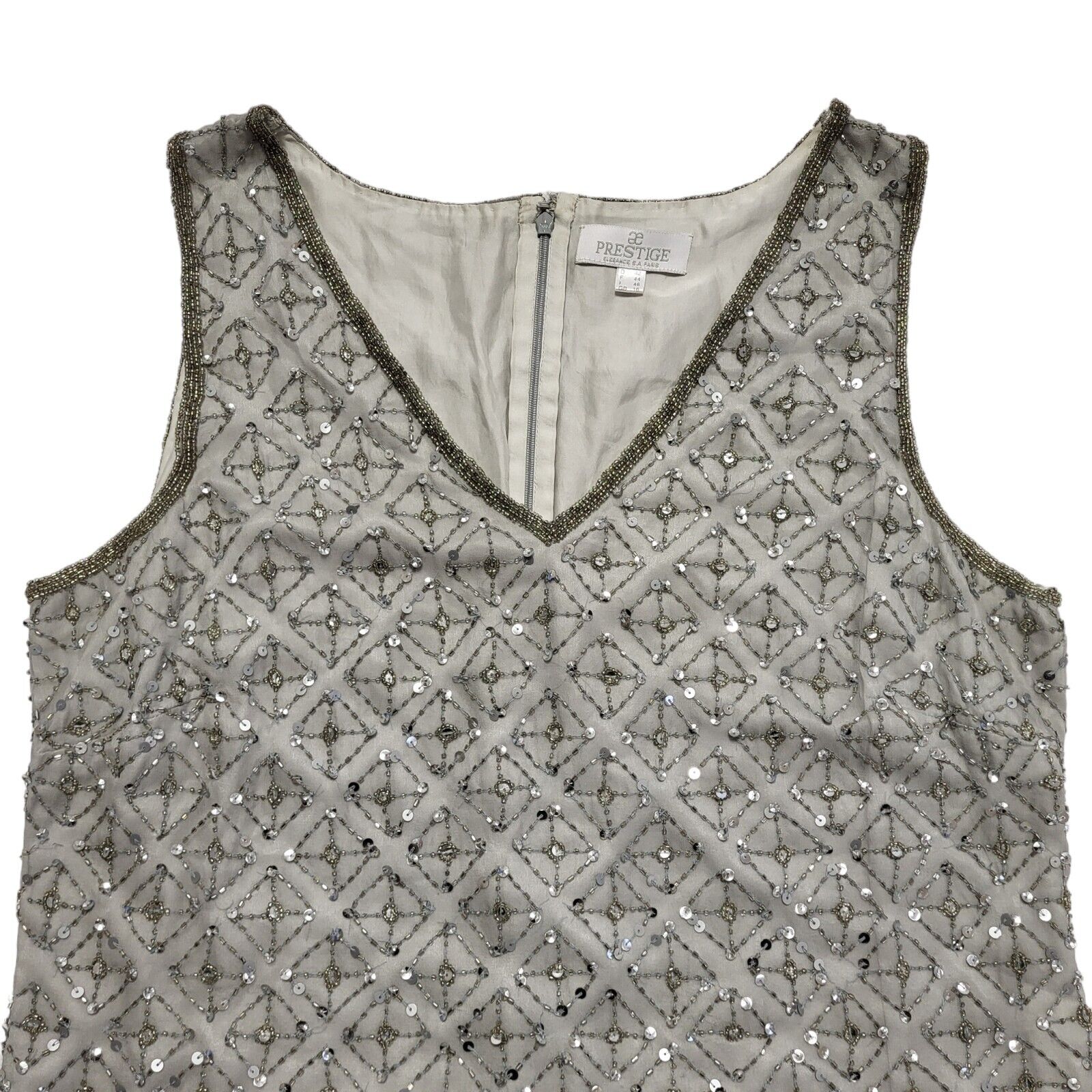 Prestige 90s Vintage Grey Sequin Vest Party Silk Top Women's UK Size 16
