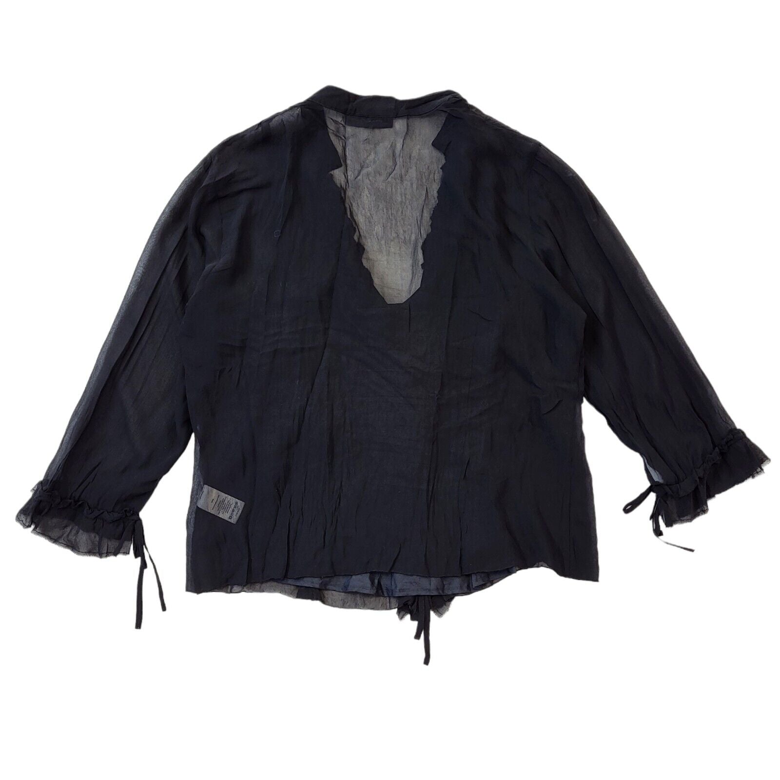 Principles Y2K Black Sheer Tie Front Ruffle Blouse Women's 14