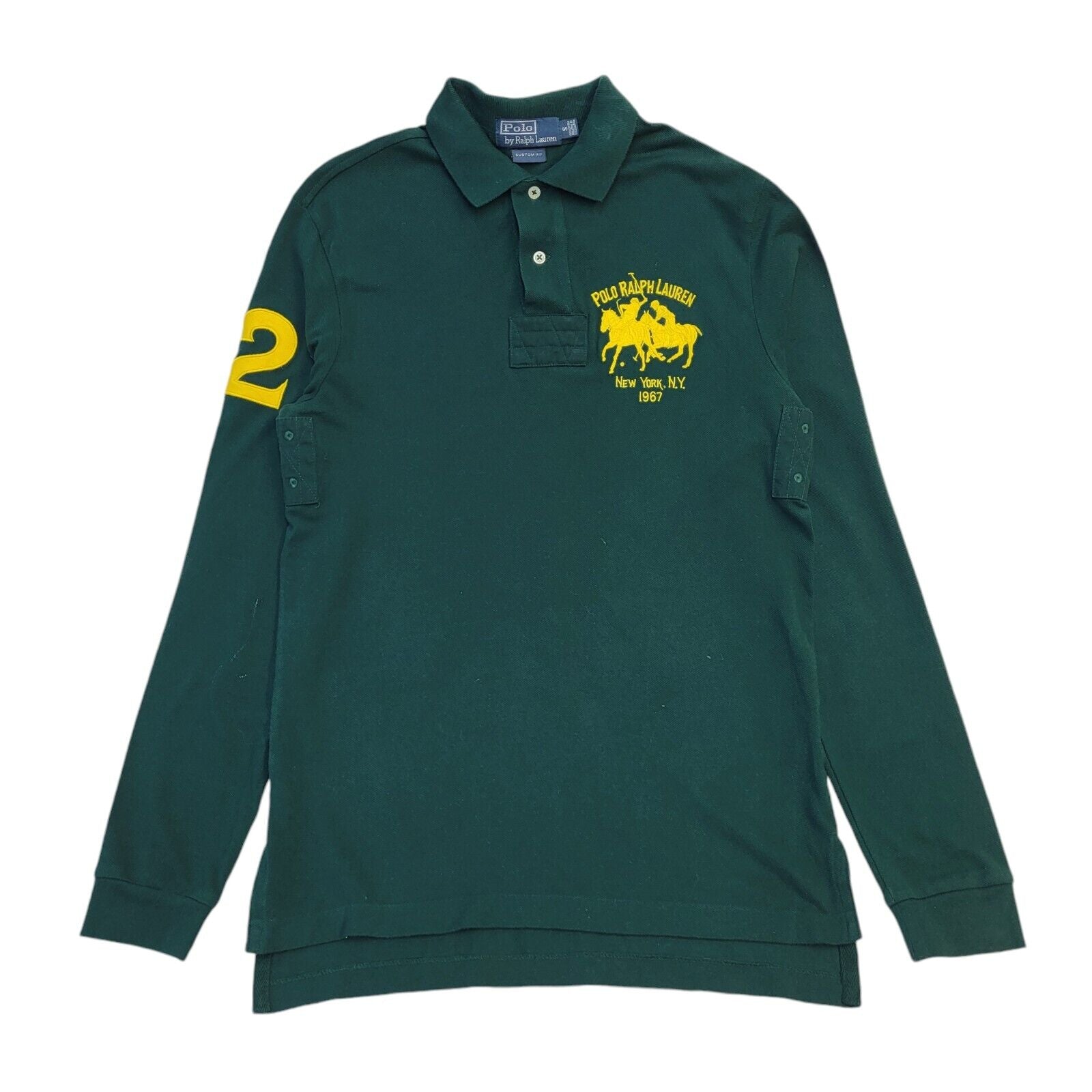 Ralph Lauren 90s Vintage Green Long Sleeve Polo Shirt Men's Size S