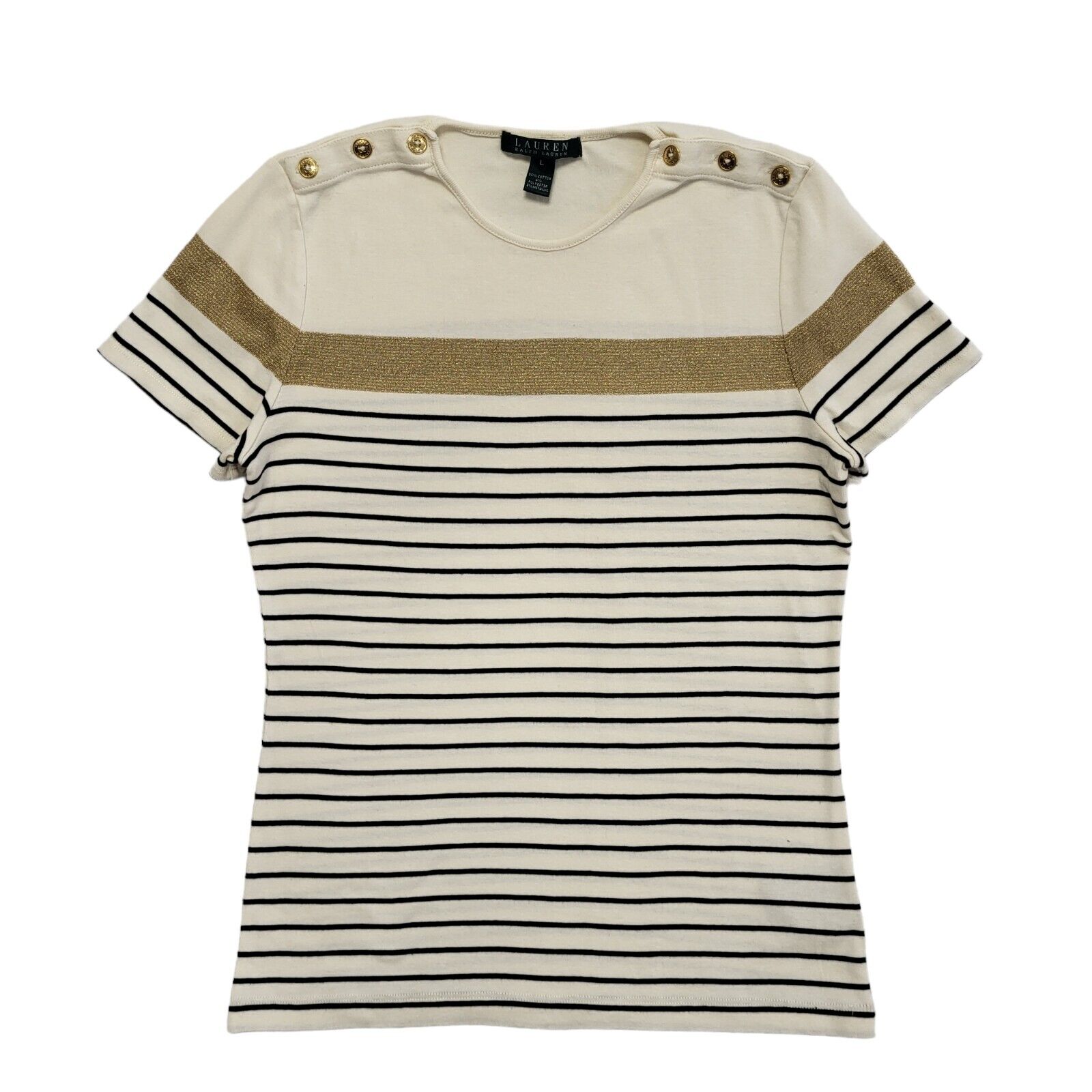 Ralph Lauren Beige Striped Short Sleeve Round Neck Women's UK Size L