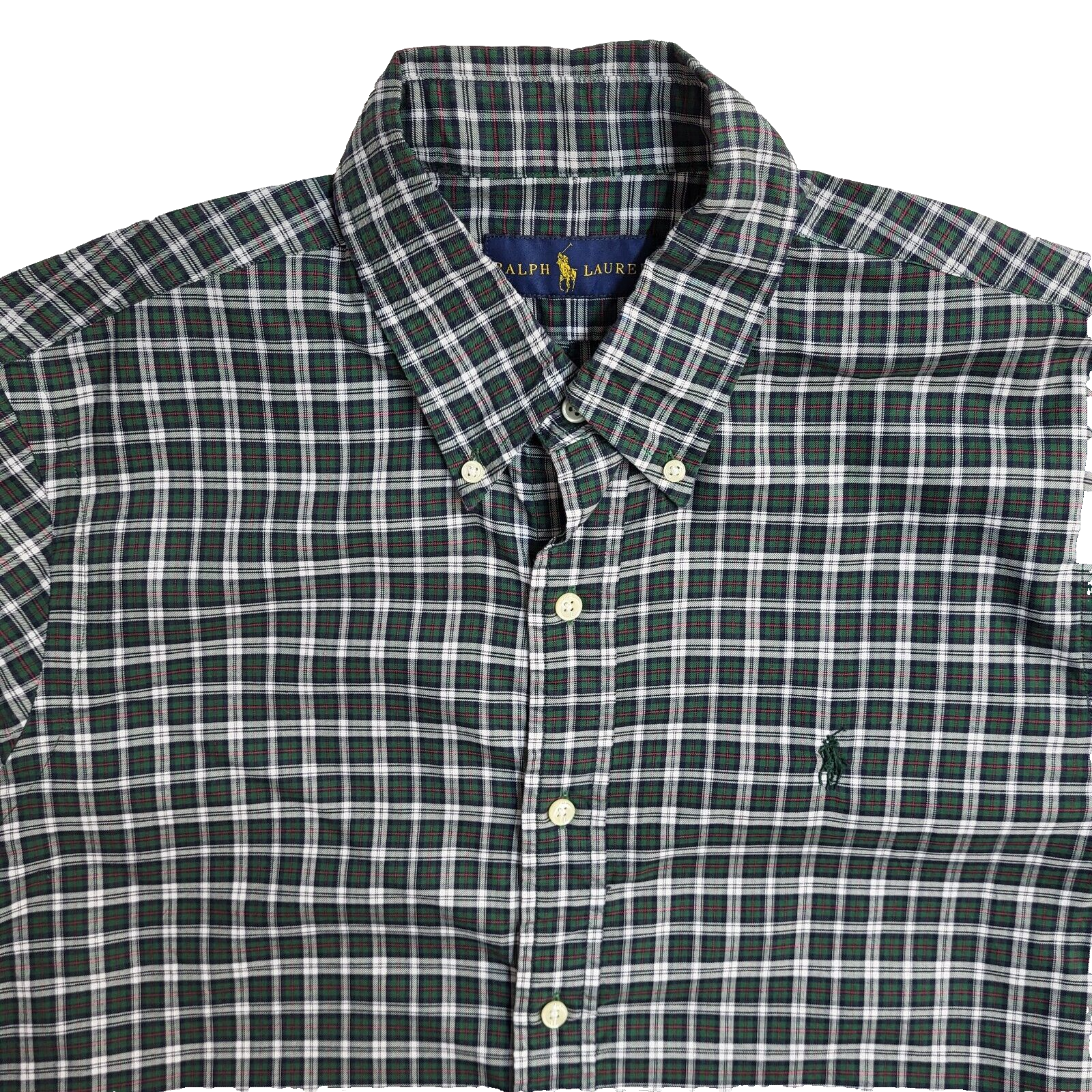 Ralph Lauren Green Checked Vintage 90's Long Sleeve Shirt UK Men's Size M