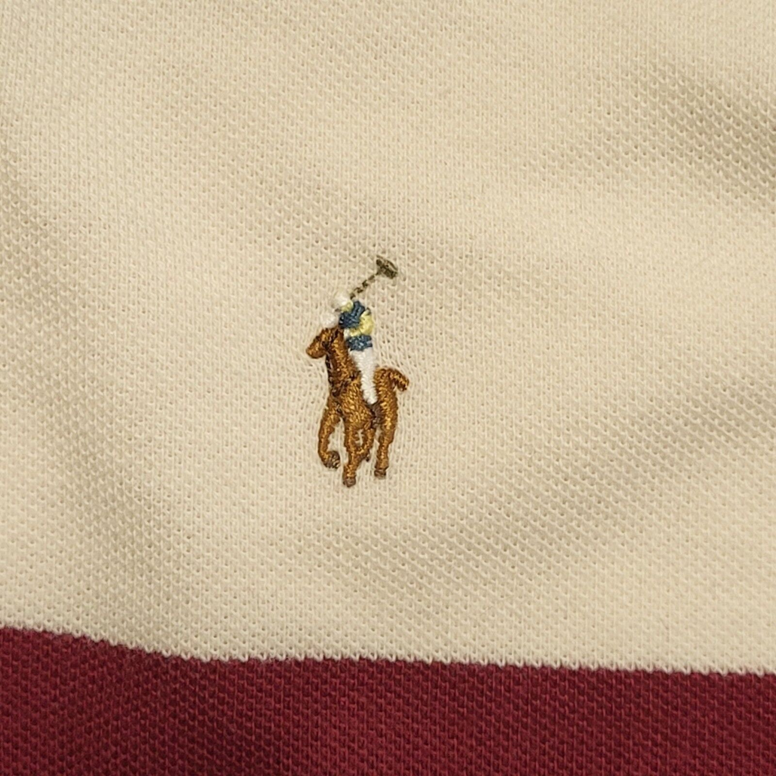 Ralph Lauren Y2K Blue Burgundy Striped Polo Shirt 90s Vintage Boys M Age 10-12