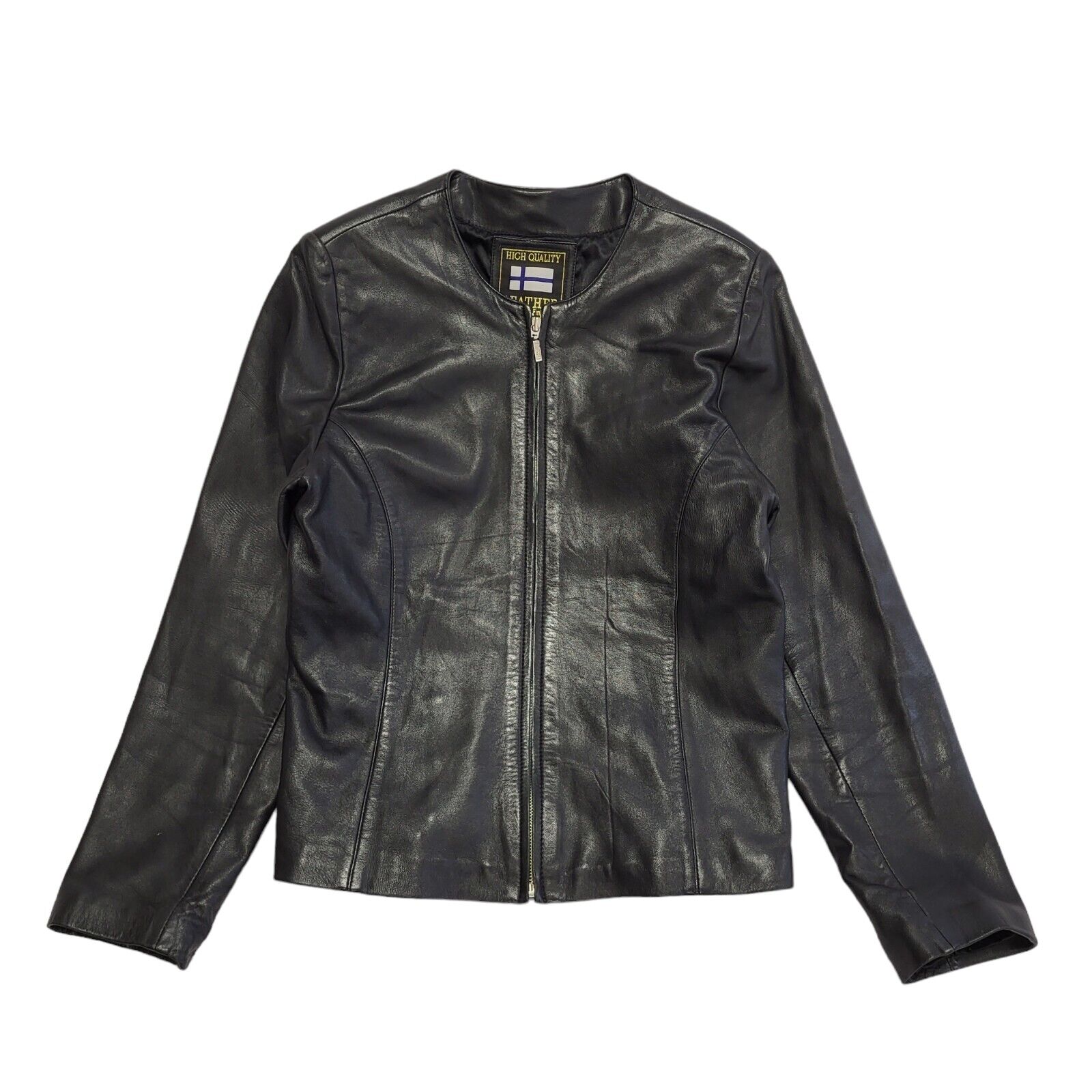 Real Leather Black 90s Vintage Zipped Leather Jacket Uk Women's Size 12