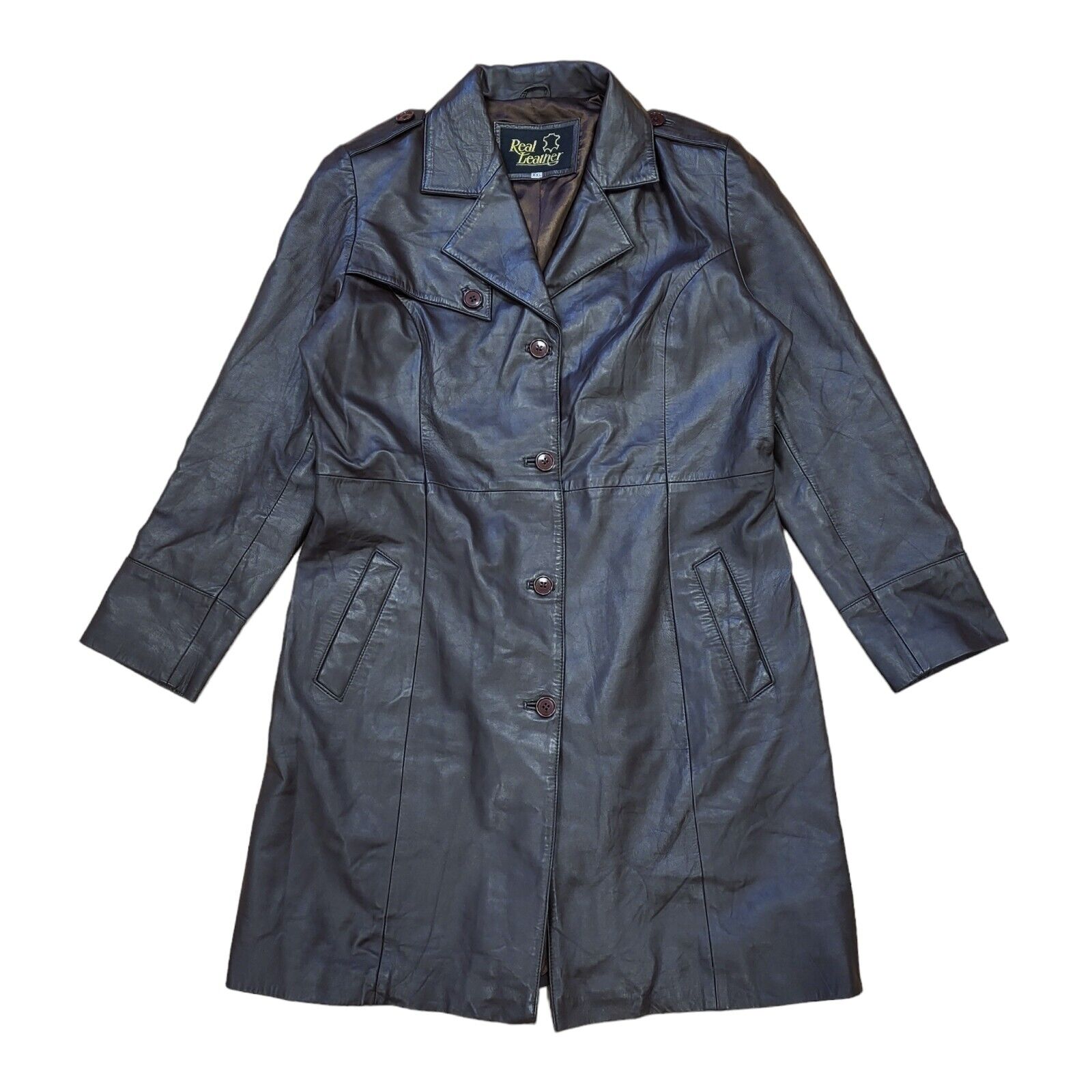 Real Leather Vintage 90s Brown Leather Rain Coat Women's Size 2XL