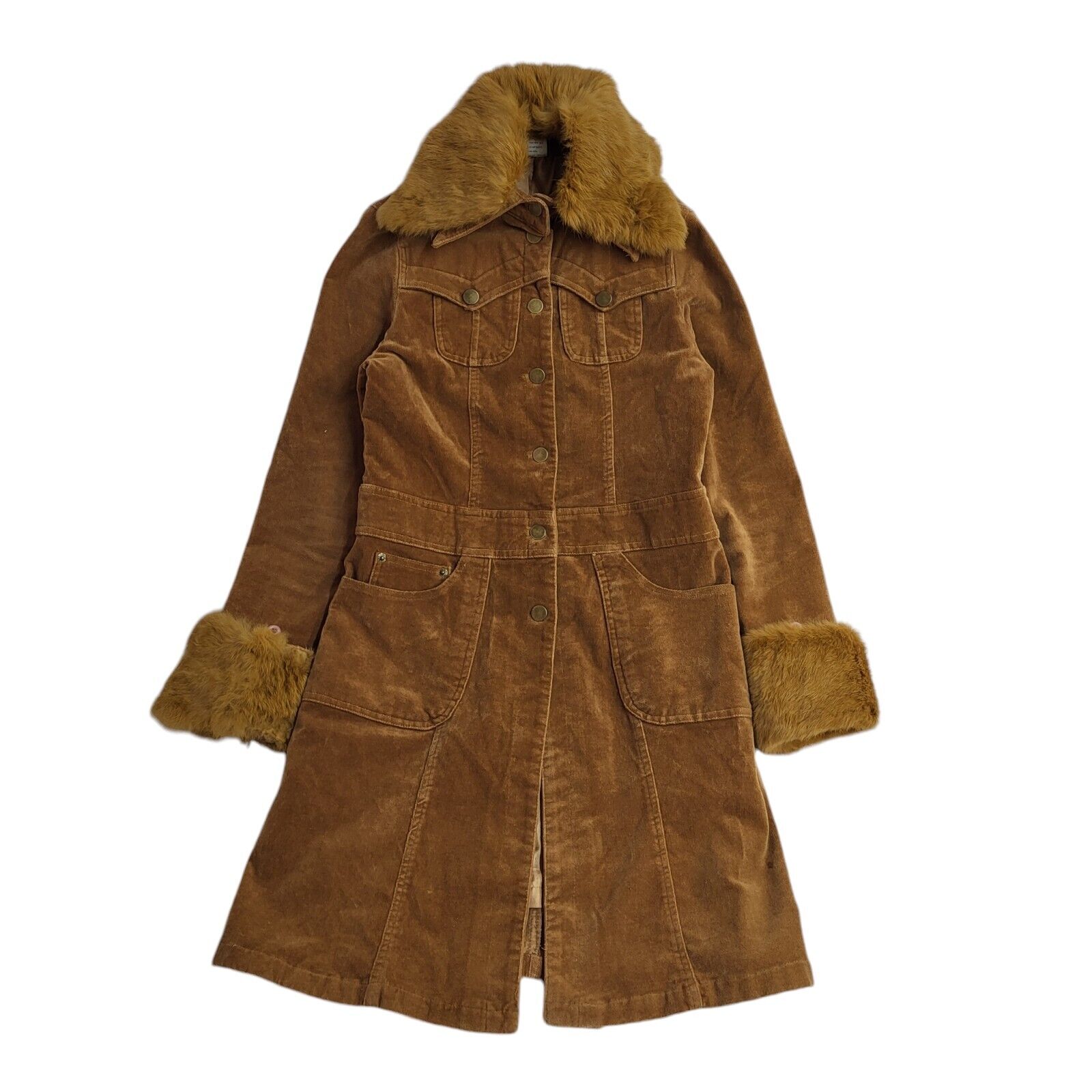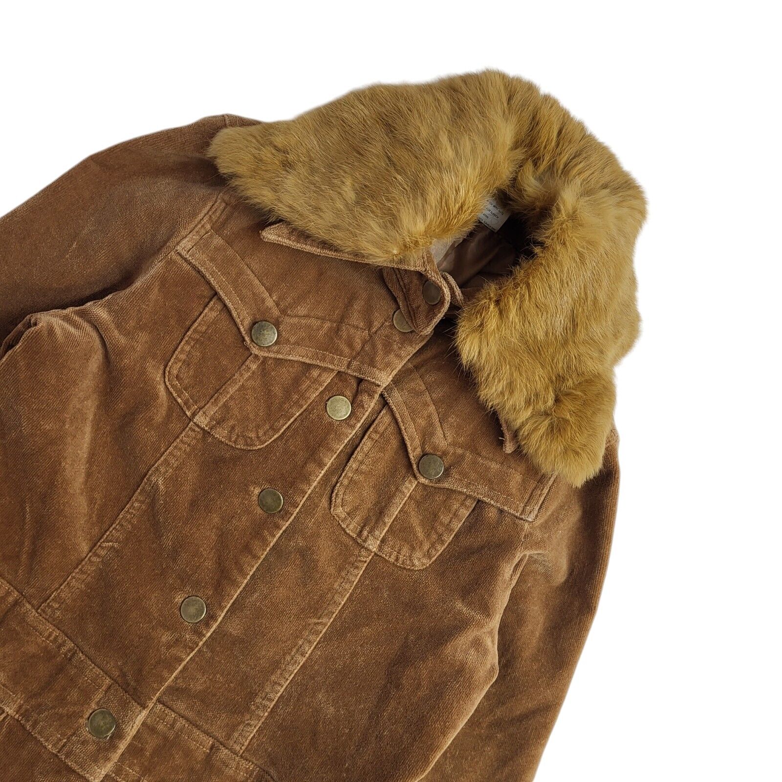 Red Cherry Brown 80s Buttons Corduroy Coat Uk Girl's Size 11 Years