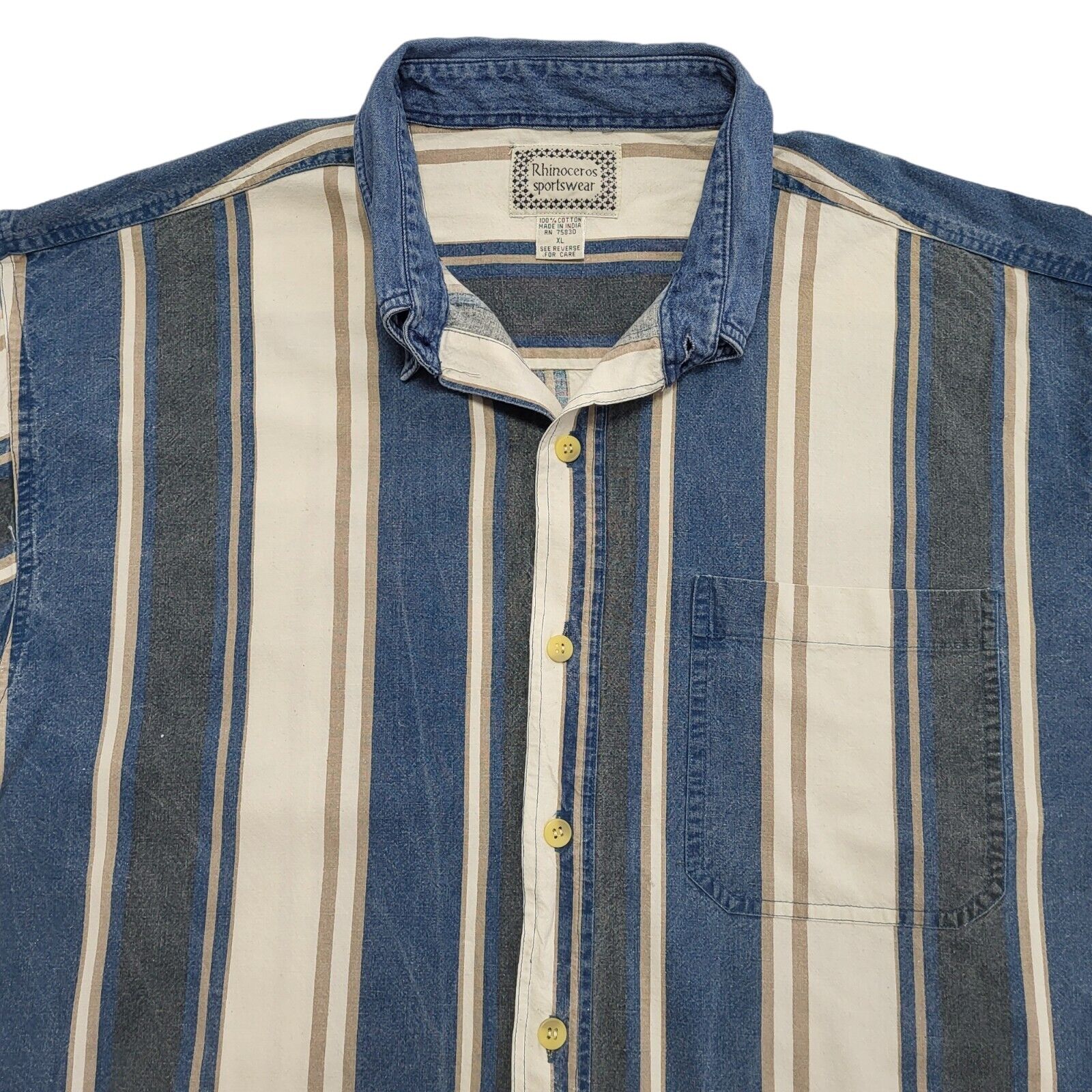 Rhinoceros 90's Blue & White Striped Long Sleeve Shirt Uk Men's UK XL.