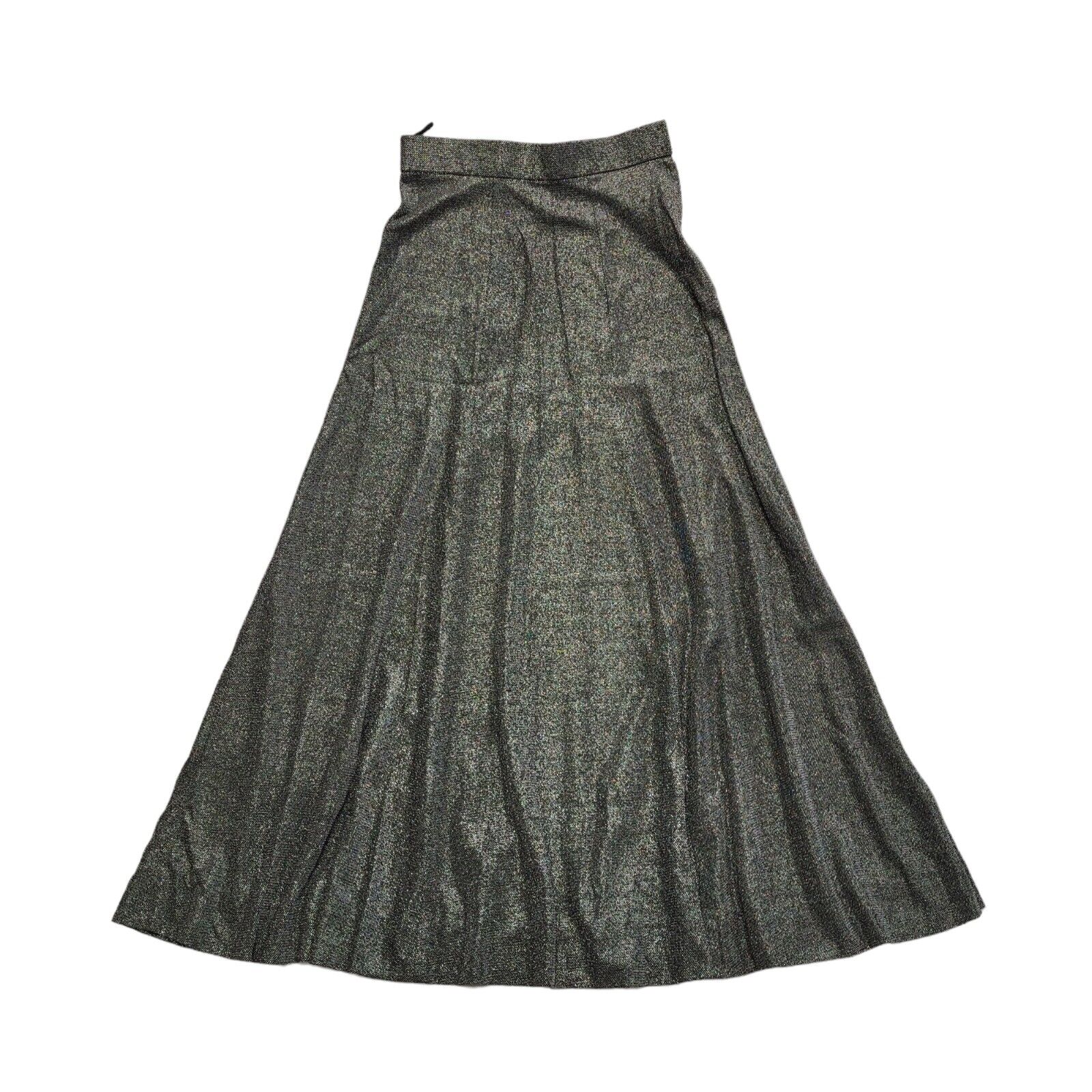Richard Shops 70s Black & Silver Sparkly Long Maxi Skirt Women's UK 8 W26