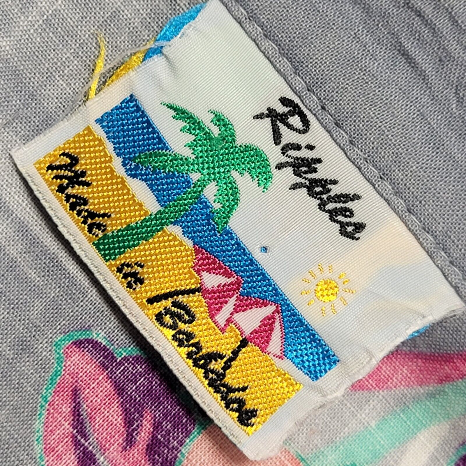 Ripples Vintage 90's Grey Green Palm Trees Short Sleeve Shirt Men's UK XL