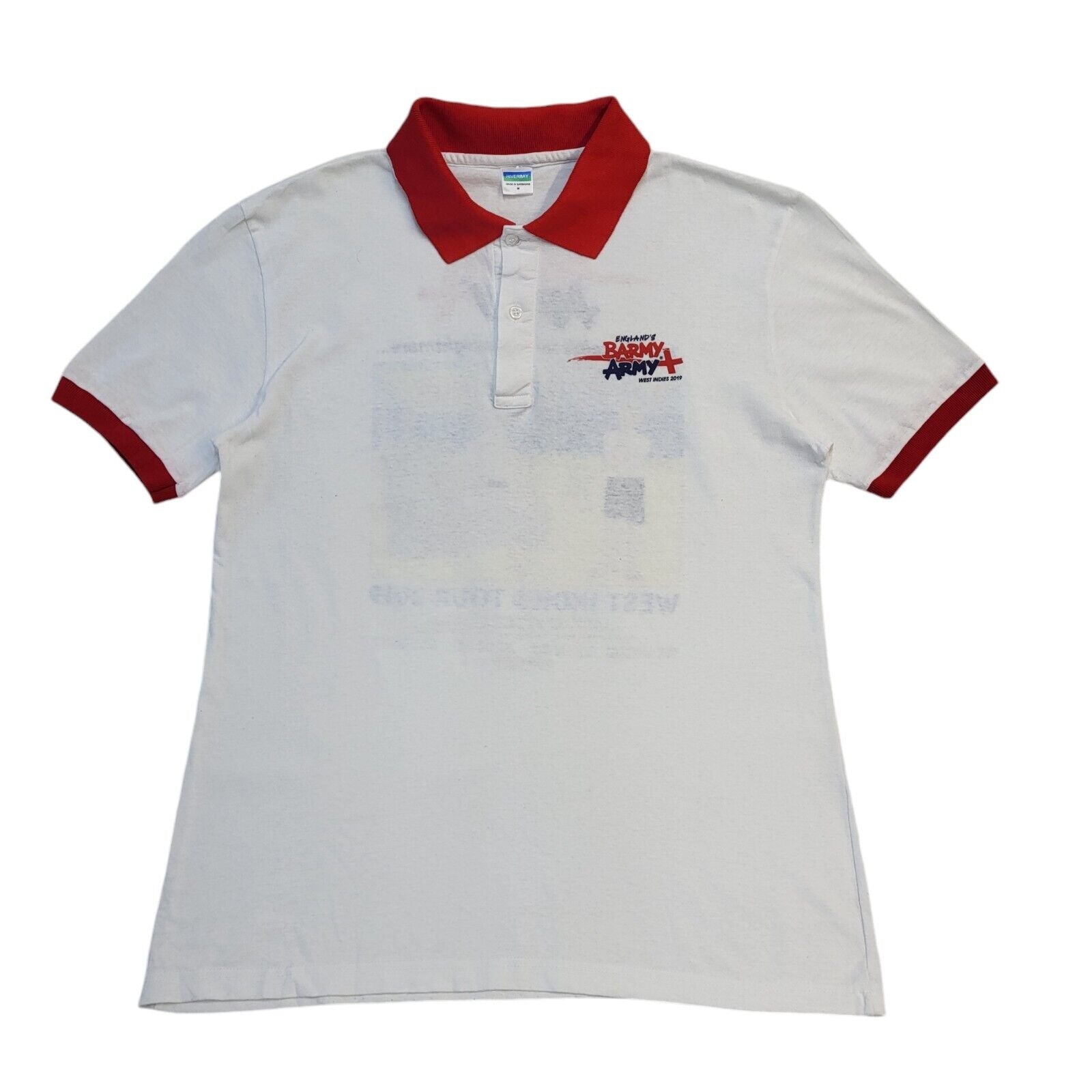 Riverbay 90s Vintage White England Barmy Army Short Sleeve Polo Shirt Men's M